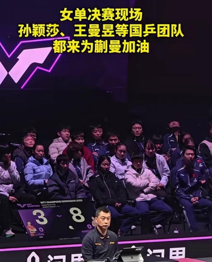 3月15日,重庆冠军赛女单决赛,孙颖莎、王曼昱、陈幸同全都现身看台,羽绒服裹得暖暖和和,氛围感直接拉满。 我们奶团子莎莎看球也超认真,全程专注不划水,白白糯糯太可爱,曼昱和同同也在默默为队友加油,主力们同框真的太养眼。 小将蒯曼拼到最后,虽有遗憾但未来可期。 重庆站收官,明天大部队就要奔赴成都封训啦! 国乒永远团结又热血,期待大家封训归来,继续闪耀赛场。