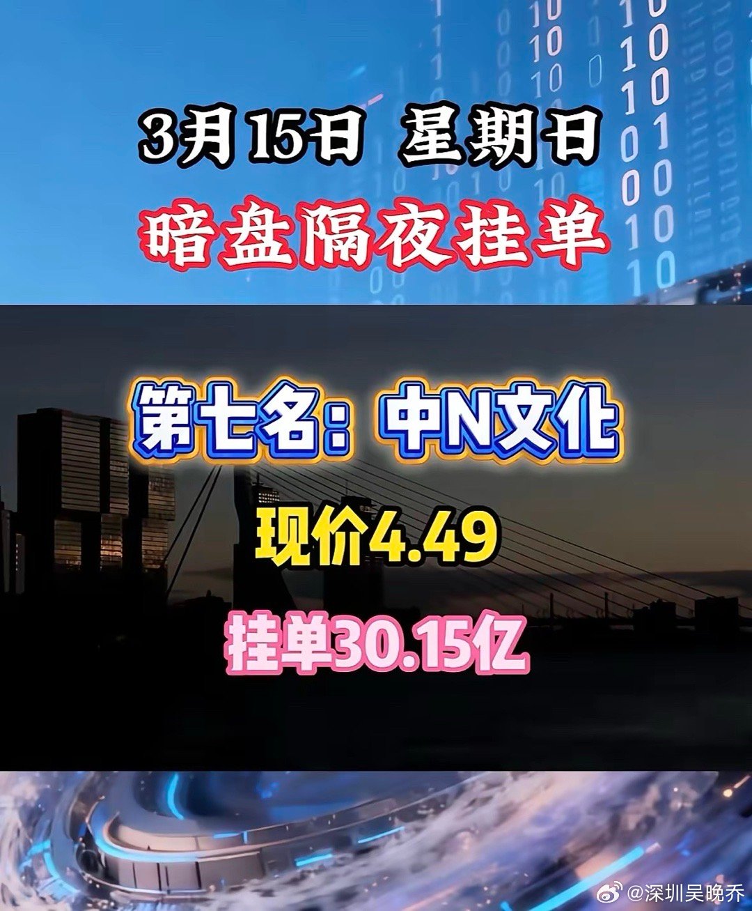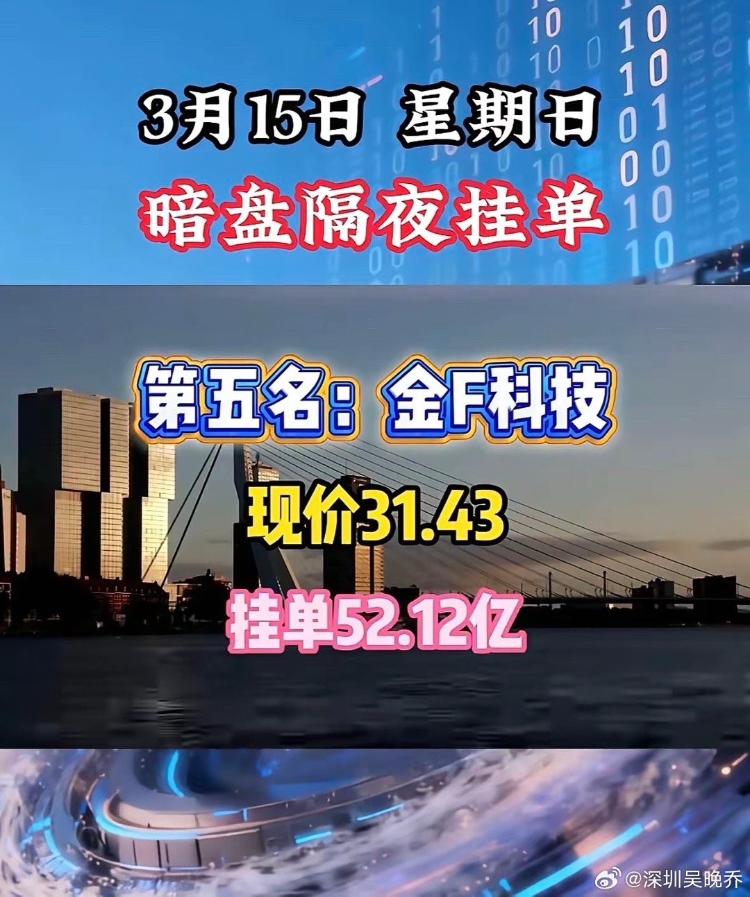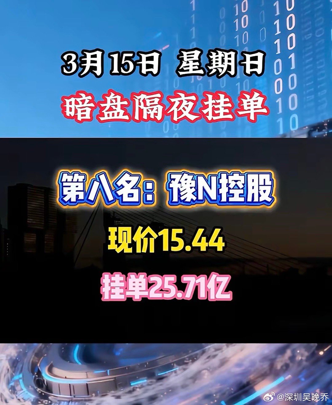 3月15日晚上搞暗盘隔夜挂单。顺便研究股票信息,还真有不少门道。3月16日的隔夜挂单排名就很有看头。像中国能建以66.05亿挂单量居首,现价3.78,这和能源建设大趋势有关,新基建和能源转型让资金看重它的长期价值。节能风电挂单59.26亿排第二,风电板块热度高,政策和技术推动下,资金预期也高。还有岩山科技,现价10.45元,曾冲到112.75元,价格落差让部分资金看到博弈机会。这些挂单数据背后藏着资金暗涌的信号,值得股民好好琢磨。