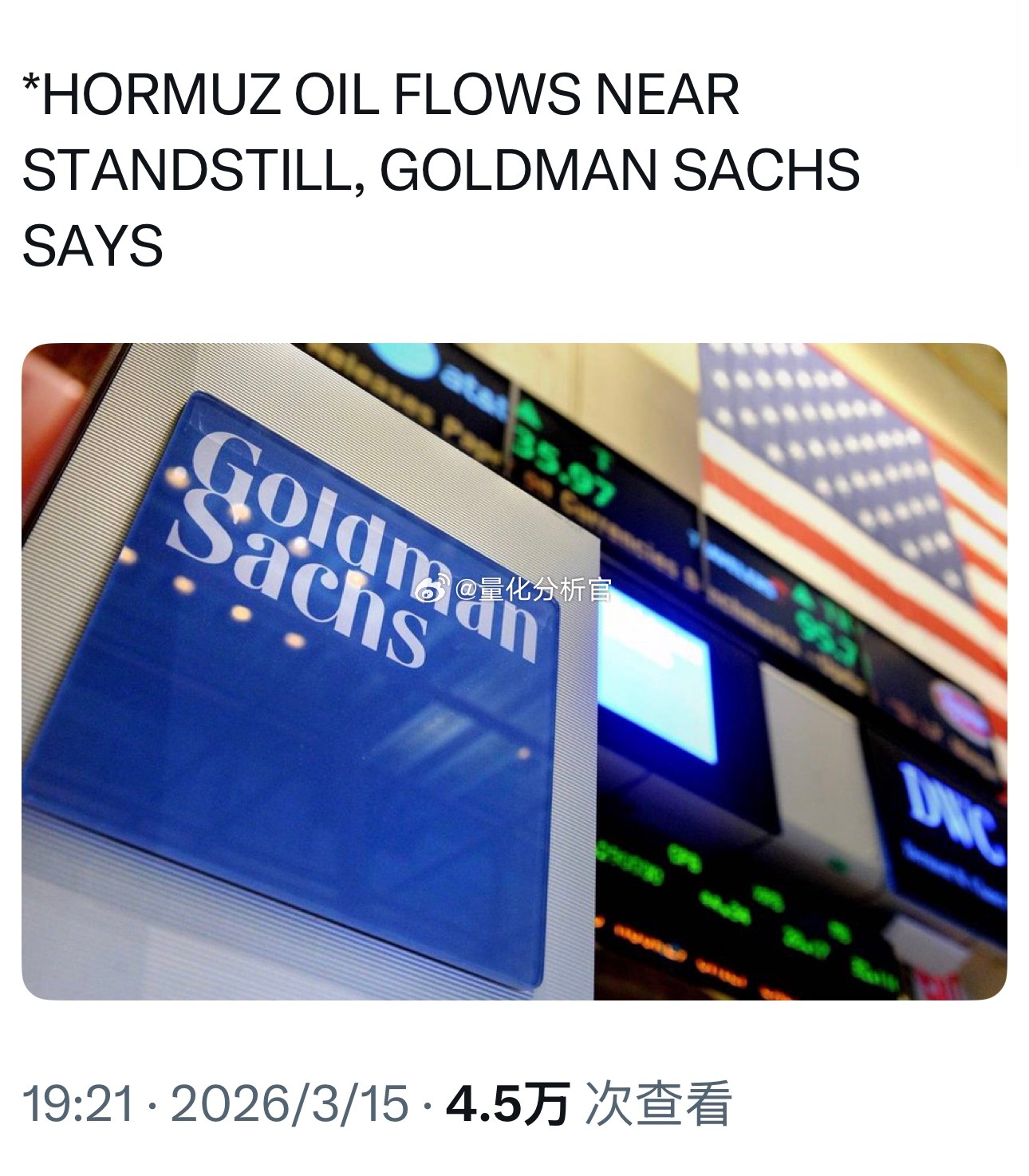 高盛:霍尔木兹海峡经过的原油数量未发生变化(依然未通)伊朗