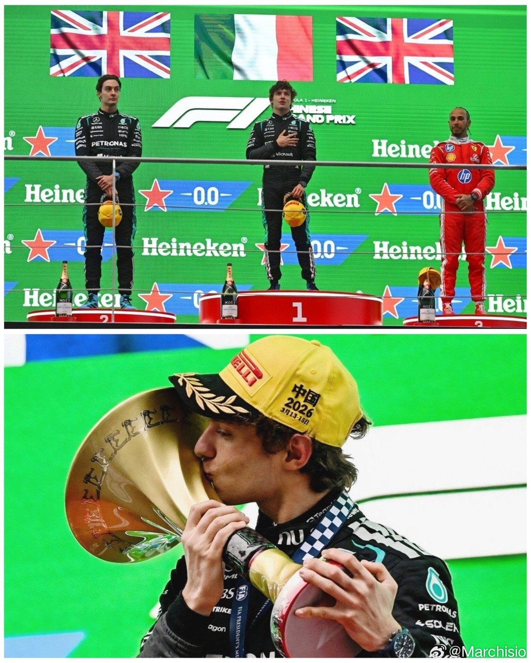 一方面是庆祝时隔20年和398场大奖赛,再次有意大利车手终于在F1分站赛中取得胜利!而且安东内利年仅19岁就赢得了分站赛冠军,是历史上第二年轻的分站赛冠军,而且上演了完美周末(上一次做到这样的意大利人阿斯卡里大约是70年前的事了)。