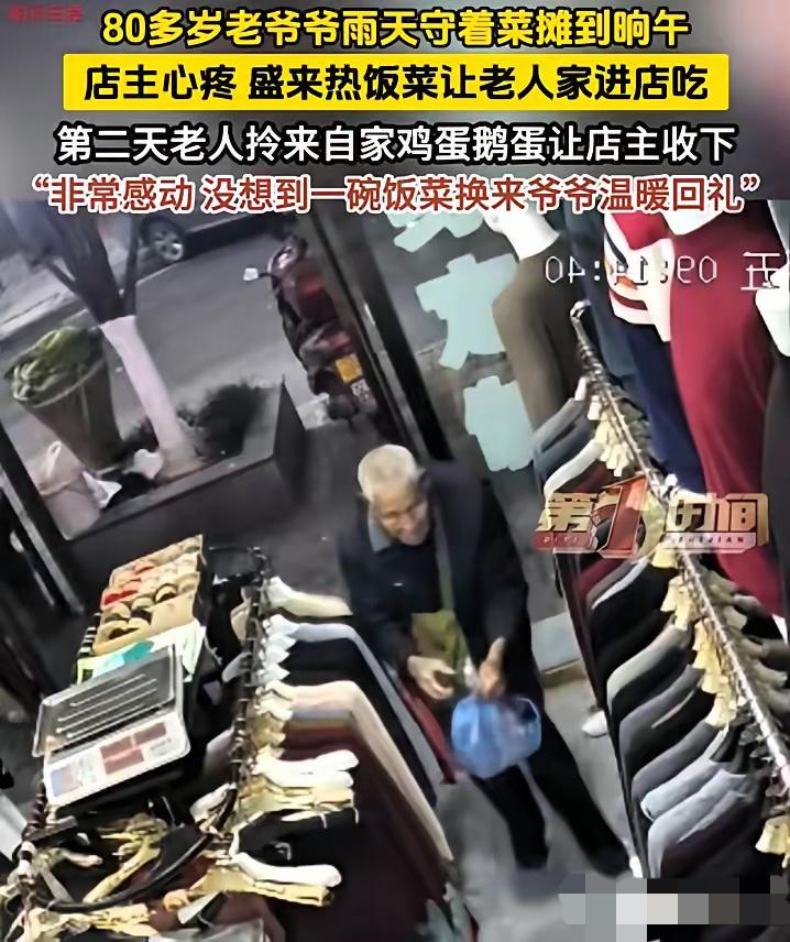 重庆成衣店的老板,做梦也没想到,她与店门口80多岁卖菜老爷爷的一个小插曲,会上了新闻。 这位女老板经营成衣店已有十余年,店铺规模不大,主营日常成衣与中老年服饰,平日里踏实打理店铺,对待周边商户、过路行人都十分谦和。多年来她靠着稳定的品质和实在的经营方式维持生计,生活平淡规律,从未想过会因一件小事受到外界关注。 店门口的路段是周边居民日常通行的要道,一位八十五岁的老爷爷常年在此售卖自家种植的蔬菜,每日都会在固定位置摆摊,和周边商户早已形成默默相伴的邻里状态。 事发当天,店内午后的客流持续减少,店主按常规整理店内货品、打扫店面卫生。老爷爷依旧在店外的固定位置驻守,全程未离开摊位,也没有进食正餐。店主看到这一情况后,转身回到店内,将自己准备的晚餐盛出一碗,径直送到老爷爷手中。 整个过程没有多余的动作,也没有刻意的表现,完全是自然而然的善意传递,店主从未觉得这是值得提及的事情,只当作是邻里之间应有的关照。第二天,老爷爷特意来到成衣店门前,将自家积攒的鸡蛋和鹅蛋送到店主手中,用最朴实的方式回馈前一日收到的温暖,店主收下这份心意,也被老爷爷的真诚所触动。 这一幕被路过的市民用手机拍摄下来,发布到重庆本地社交平台。视频发布后快速被网友转发、点赞,播放量短时间内大幅上涨,相关话题陆续登上本地热搜。 不少网友主动转发视频,分享这份来自普通人的温暖,本地新闻媒体看到相关内容后,主动联系店主与老爷爷,对事件进行了客观平实的报道,全程未做过度渲染,只还原事件本身的经过。 店主面对媒体和网友的关注,始终保持平和的态度,反复表示这只是微不足道的小事,任何人看到都会伸出援手,没必要过度关注。 老爷爷依旧保持每日卖菜的生活节奏,没有因为事件走红改变自己的生活状态,依旧按时出摊、踏实售卖自家的蔬菜。 事件走红后,不少市民特意前往成衣店选购衣物,用实际行动支持这位热心店主;也有市民专程来到老爷爷的菜摊前,主动购买蔬菜,减少老人的等候时间;社区工作人员也主动上门了解老爷爷的生活情况,为其提供力所能及的帮扶,让老人的生活多一份保障。 网友们的留言朴实又真挚,有网友表示,平凡人的善意最能打动人心,一碗热饭看似普通,却藏着最真诚的温暖,老人的回礼更让这份善意有了双向奔赴的美好。 也有网友写道,生活里从不缺美好,缺的是愿意伸手的善意,这样的小事让城市更有温度,也让大家看到普通人身上的善良底色。 还有网友感慨,年纪大的老人辛苦谋生,能被身边人温柔以待,是最难得的幸福,希望更多人能关注身边的高龄老人,给予力所能及的帮助。 另有网友提到,善意从来都不需要惊天动地,一个简单的举动、一份真诚的体谅,就能温暖一个人、点亮一段时光。 这件事没有跌宕起伏的情节,也没有华丽的包装,只是普通人之间最朴素的互助。善意的传递从来都没有门槛,一次举手之劳,就能为他人解决当下的难处,而真诚的回馈,又让这份善意形成了温暖的循环。 日常里的美好,往往不来自宏大的叙事,而来自邻里之间的体谅、陌生人之间的关照,这些细碎的温暖,拼凑起城市最动人的模样,也让大家明白,善良是一种本能,更是一种可以相互感染的力量。 这件事让大家清楚,善意无关大小,平凡的举动也能凝聚成温暖的力量,人与人之间的体谅与互助,是生活里最珍贵的底色。在日常里多留意身边的人,多做一点力所能及的小事,就能让身边多一份温暖,让生活多一份美好。 你在生活里遇到过哪些暖心的小事?欢迎在评论区留言分享。