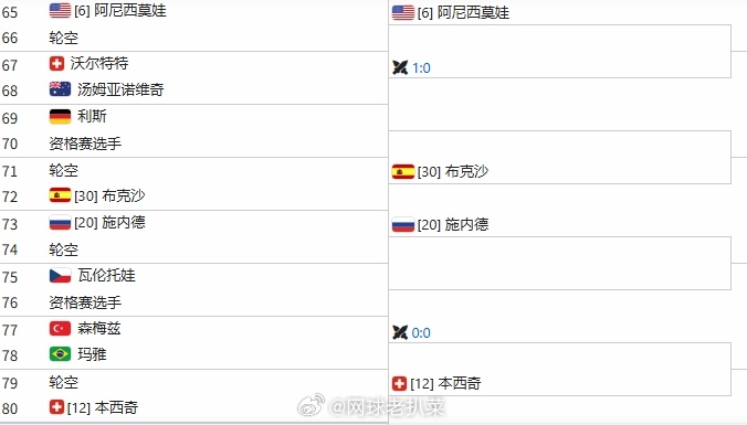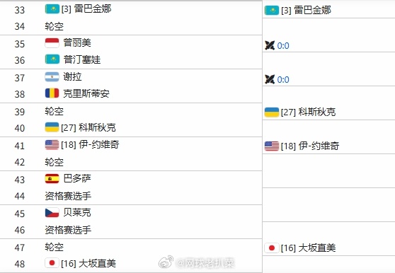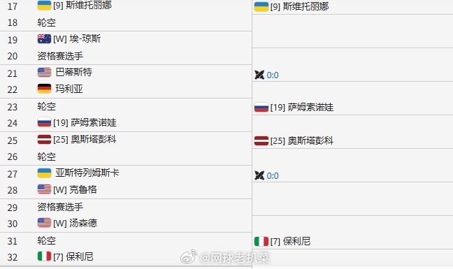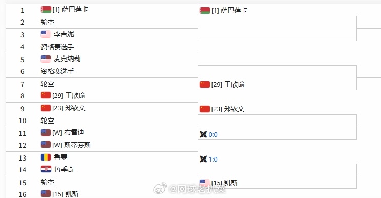 女子前八种子对位:萨巴伦卡 - 鲍里妮莱巴金娜 - 佩古拉阿尼西莫娃 - 高芙米拉·安德列娃 - 斯瓦泰克 网球wta