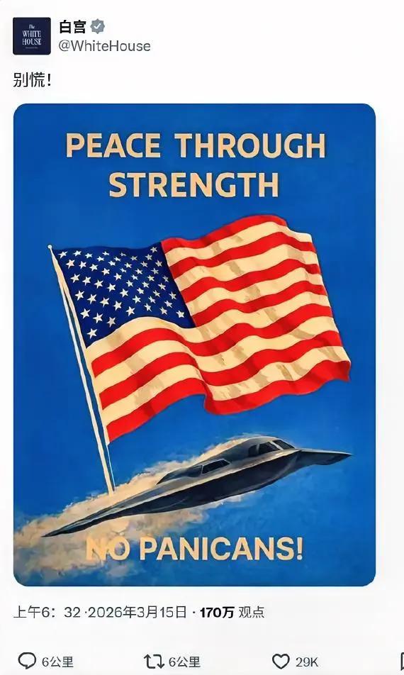 哈哈哈哈[大笑]别慌…… 我们慌个鸡毛啊! 现在这情形,谁慌谁知道! 美国旗插在灰机上反风飘扬 典型慌不择路, 走夜路吹口哨,自己给自己壮胆! 本来以为从从容容游刃有余, 如今是匆匆忙忙连滚带爬! 嘴上说不慌,心里慌到炸。 这歌就送给你吧! 倒车请注意!越装越心虚!