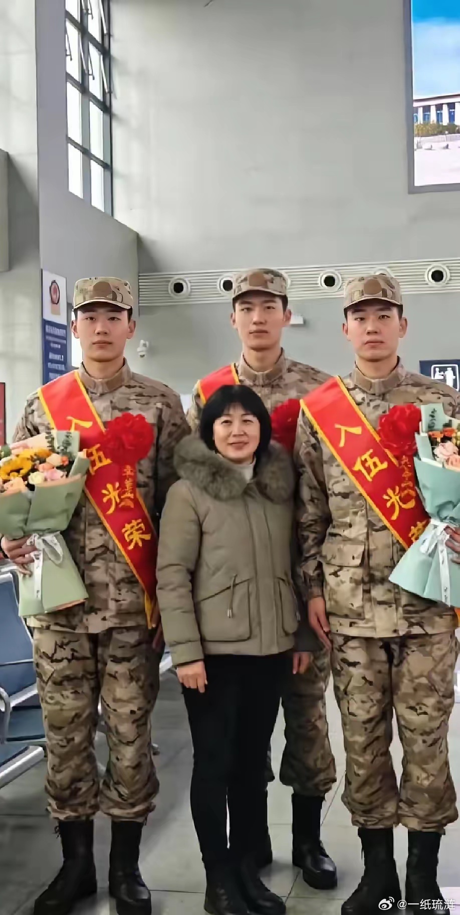 伟大的三胞胎母亲 送三子参军, 母亲辛苦把三个儿子养大,又无私地把他们全部交给国家,交给部队,好儿子,好母亲 值得尊敬。值得尊重的母亲三兄弟光荣入伍