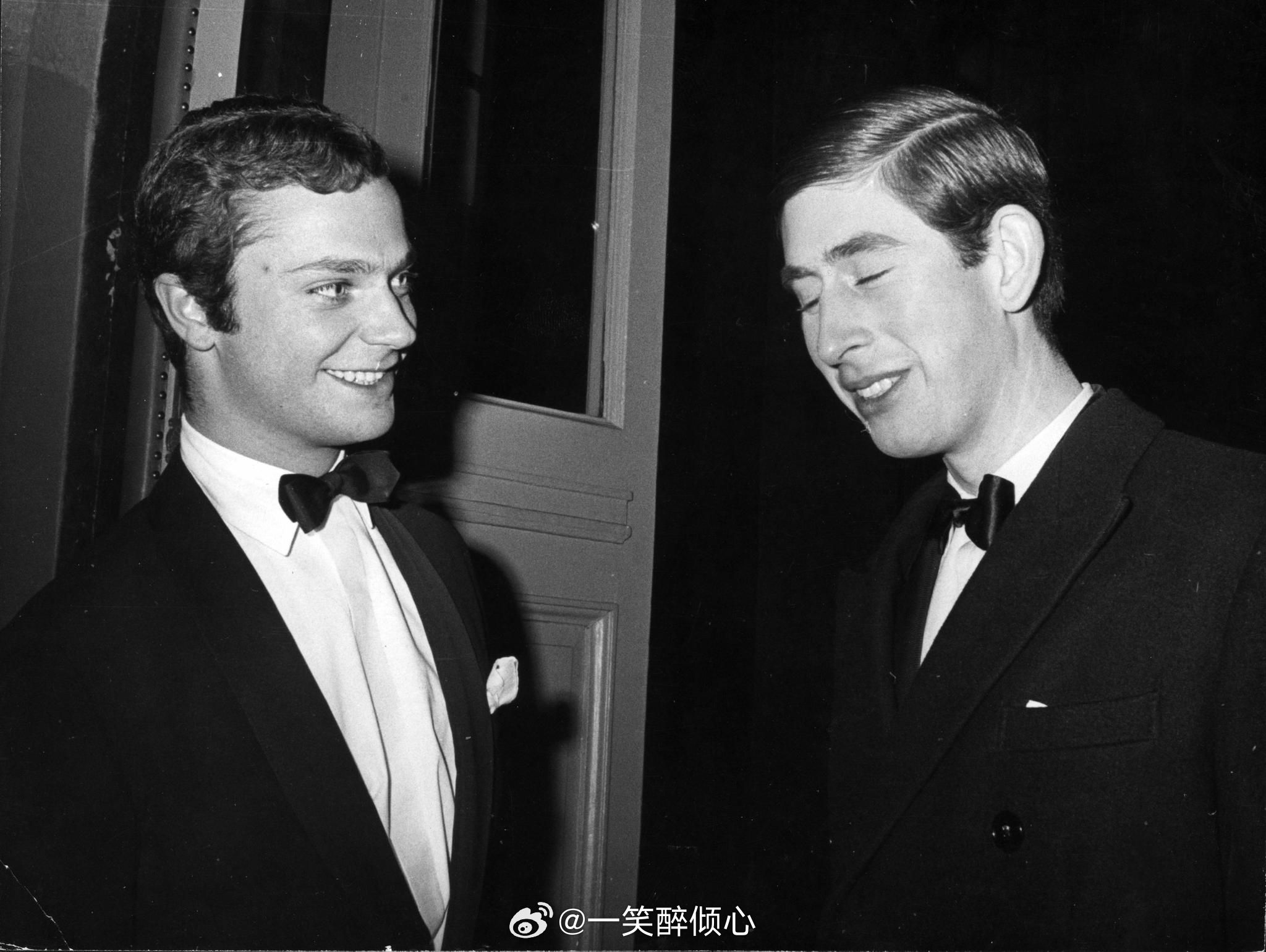 1969年3月23日,威尔士亲王查尔斯王储(即查尔斯三世)和瑞典的卡尔古斯塔夫王子(即瑞典的卡尔古斯塔夫十六世国王)在瑞典斯德哥尔摩的皇宫参加派对🇸🇪