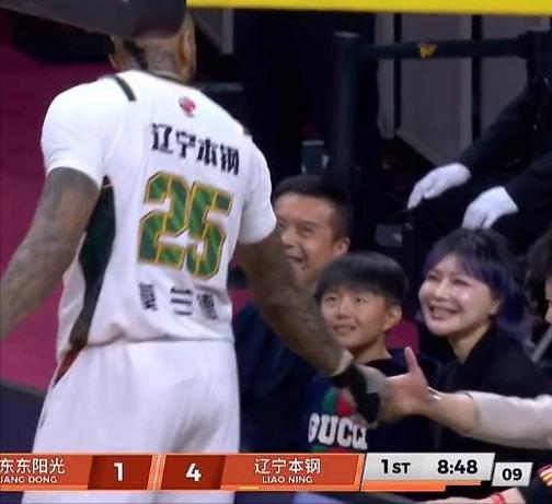 莫兰德与广东宏远老板和老板娘一家热情打招呼,别看莫兰德平时大大咧咧的,看着像是一个粗人,其实莫兰德还是很懂人情世故的。 来到广东队的主场,莫兰德在比赛中封盖了焦泊乔的扣篮,被裁判吹了犯规,莫兰德对裁判的判罚有些异议,手抓着篮球走到了场地边,朝坐在篮板后面的广东队老板和老板娘打招呼,广东队老板一家也是对莫兰德报以微笑回应。 尽管莫兰德在广东队只打了一年球,而且在广东队期间莫兰德也没有更改自己社媒的签名,写的还是辽宁队球员,但毕竟外援来CBA打球也是为了工作赚钱,所以莫兰德和广东队还是关系不错的。