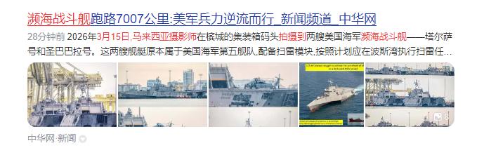 “比美国海军林肯号航母跑的还远,美国海军LCS濒海战斗舰从波斯湾跑路,出现在南海方向,距离巴林7000多公里!” 当地时间3月15日,有马来西亚摄影师在自己国家的槟城集装箱码头,意外拍到了两艘美国军舰。仔细一看才知道,这是美国海军第5舰队的濒海战斗舰,一艘叫塔尔萨号,另一艘叫圣巴巴拉号,船上还配备着扫雷模块。 这两艘舰属于美国海军的LCS濒海战斗舰,这种军舰本来就是为了在近海作战设计的,比如波斯湾、霍尔木兹海峡这种比较狭窄的海域,是它们该待的地方。 美国海军在巴林的第5舰队,一共就部署了3艘这种濒海战斗舰,除了这两艘跑路的,就剩下一艘堪培拉号还留在中东。按照美国海军的计划,这3艘舰是来接替4艘复仇者级扫雷舰的,专门在波斯湾、霍尔木兹海峡、阿曼湾这些地方扫雷,保障美军船只的航行安全。 可现在倒好,3艘扫雷主力舰,一下跑了2艘,只剩下1艘在中东,根本没法完成扫雷任务。大家想想,波斯湾现在是什么局势?美国和伊朗正处于对峙状态,伊朗在波斯湾部署了大量水雷、反舰导弹,还有自杀式无人机和无人自爆艇,局势特别紧张。这个时候,负责扫雷的主力舰跑路,明摆着就是不敢在波斯湾待了。 有人可能会问,这两艘舰跑了多远?从巴林的美国第5舰队基地,到马来西亚槟城,距离大概有7000多公里,具体来说,差不多是7037到7778公里,取决于它们走的具体航线。 这条路线要经过波斯湾、霍尔木兹海峡、阿拉伯海、印度洋,最后穿过马六甲海峡,才能到达槟城,全程都是远洋航行。 要知道,这种濒海战斗舰的设计初衷就是近海作战,虽然航速不慢,但远洋航行并不是它们的强项,而且跑这么远,中途还要多次补给,可见它们是铁了心要从波斯湾“溜走”。 其实,这两艘舰跑路,也不是没有原因的。首先,它们的扫雷设备根本不靠谱,根本干不了扫雷的活。 这种濒海战斗舰的无人扫雷遥控系统,每次使用前要准备4个多小时,启动后还要花1个多小时校准声呐和GPS,而且经常出现系统报错、设备故障的问题,根本取代不了之前的复仇者级扫雷舰。 可美国海军偏偏把复仇者级扫雷舰全部退役,现在只能靠这种不靠谱的濒海战斗舰来扫雷,它们自己也清楚,在波斯湾扫雷,跟送死没区别。 再加上现在美伊冲突打得正凶,美军在中东的损失特别大。所以现在美国印太司令部还在大举增援中央司令部,也就是往中东增兵,可这两艘濒海战斗舰却逆流而行,从波斯湾跑到南海,简直是反着来。 有人调侃,它们这哪里是执行任务,分明是跑到槟城休整补给,躲风头来了。毕竟,在波斯湾,它们要面对伊朗的水雷和导弹,随时可能有危险,而跑到南海,能暂时安全下来,还能补充物资。 可能还有人不知道,这种濒海战斗舰本身就问题多多。它们是用铝合金做的舰体,很多艘都出现了结构裂缝,有的甚至只能低速航行,根本经不起远洋航行的折腾。 这次跑了7000多公里,估计舰体也承受了不小的压力。而且这种军舰的舰员不多,加上任务小组也不超过78人,长时间远洋航行,对舰员来说也是一种考验,这也能看出,它们这次跑路,确实是急着逃离波斯湾的危险环境。 这件事看起来只是美国两艘军舰的一次调动,其实背后反映出的是美军的困境。一方面,美军在中东的军事行动受挫,装备不靠谱、士气低落,连负责扫雷的主力舰都不敢留在原地;另一方面,美国想同时在中东和南海两处发力,可自身实力根本跟不上,只能拆东墙补西墙,让濒海战斗舰从波斯湾跑路到南海,试图在南海刷存在感。 大家都清楚,南海是中国的近海,也是国际航运要道,中国一直致力于维护南海的和平稳定。美国军舰不管是正常部署还是临时跑路到这里,都改变不了中国捍卫南海主权和权益的决心。 而且美军这种“打不过就跑”的样子,也让全世界看到了它们的拉胯,所谓的军事霸权,其实已经越来越脆弱。 说到底,美国这两艘濒海战斗舰从波斯湾跑7000多公里到南海,不是什么威风的事,反而是一种狼狈的跑路。 它们放着自己的本职工作不干,不敢在危险的地方待着,只能躲到相对安全的南海,说白了就是怂了。今后不管美军怎么在南海折腾,中国都有足够的能力应对,南海的和平稳定,绝不是美军能随便破坏的。