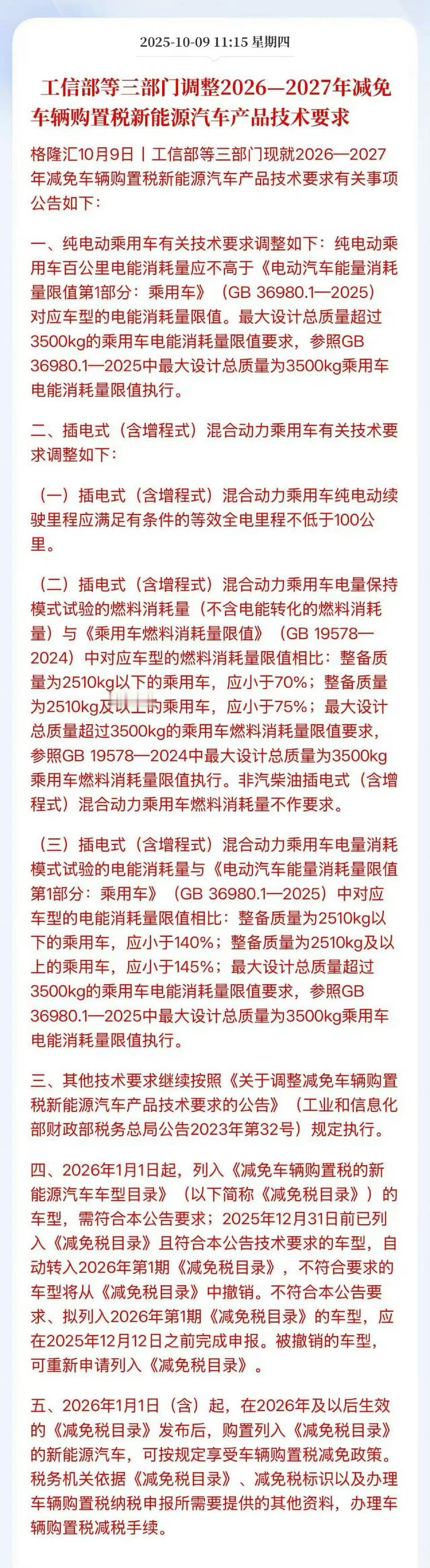 明年买混动包含增程式新能源车的纯电续航里程低于100km的不减免购置税了,那这个