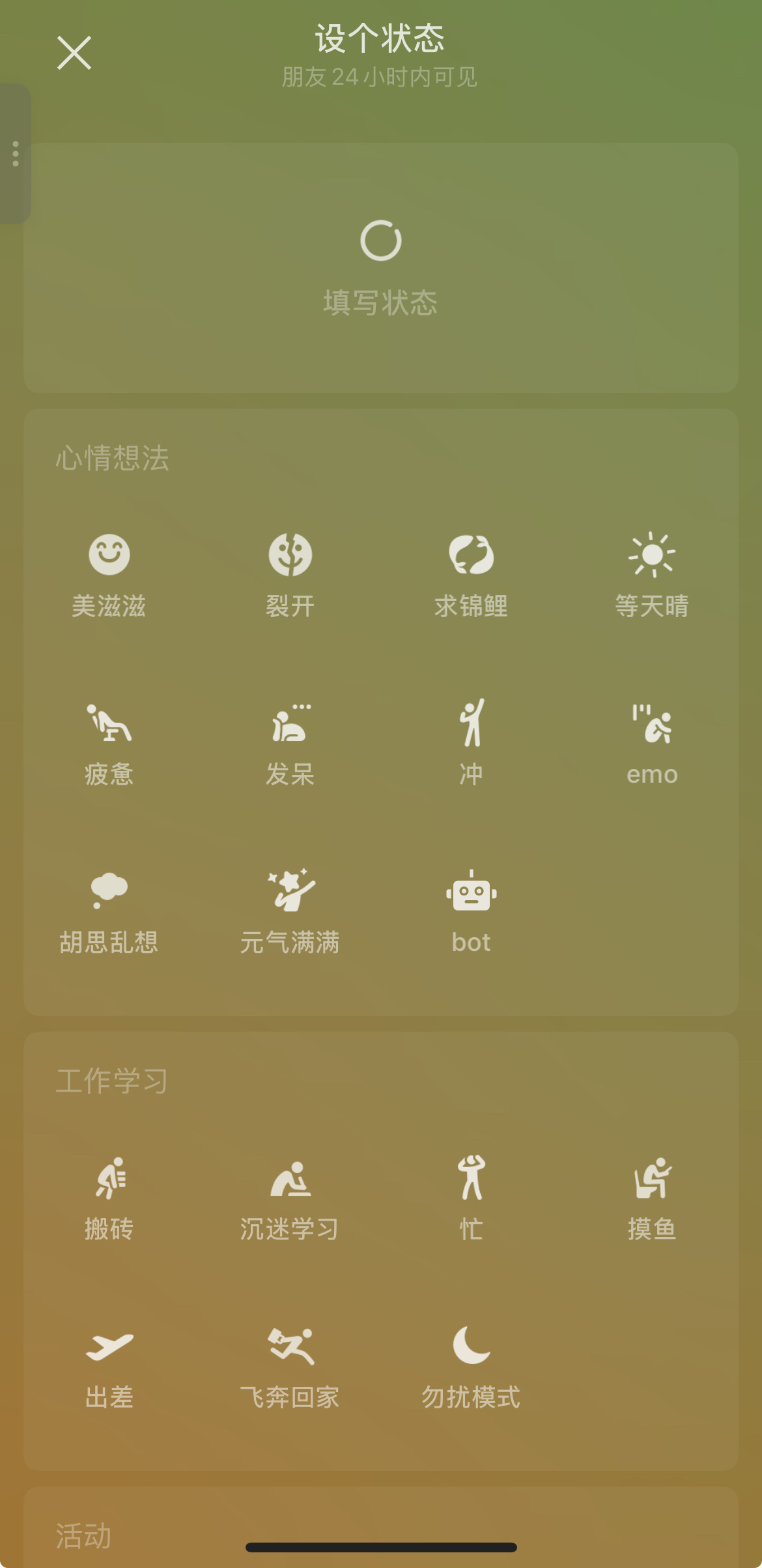 微信状态 新时代朋友圈首先一个很重要的问题是:你的crash愿意打开你的状态