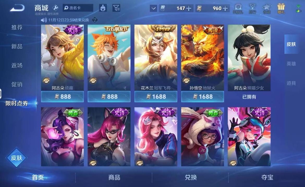 王者荣耀 后裔可以用皮肤碎片兑换,相当于我就有3000限时点券,怎么换呢,打算换