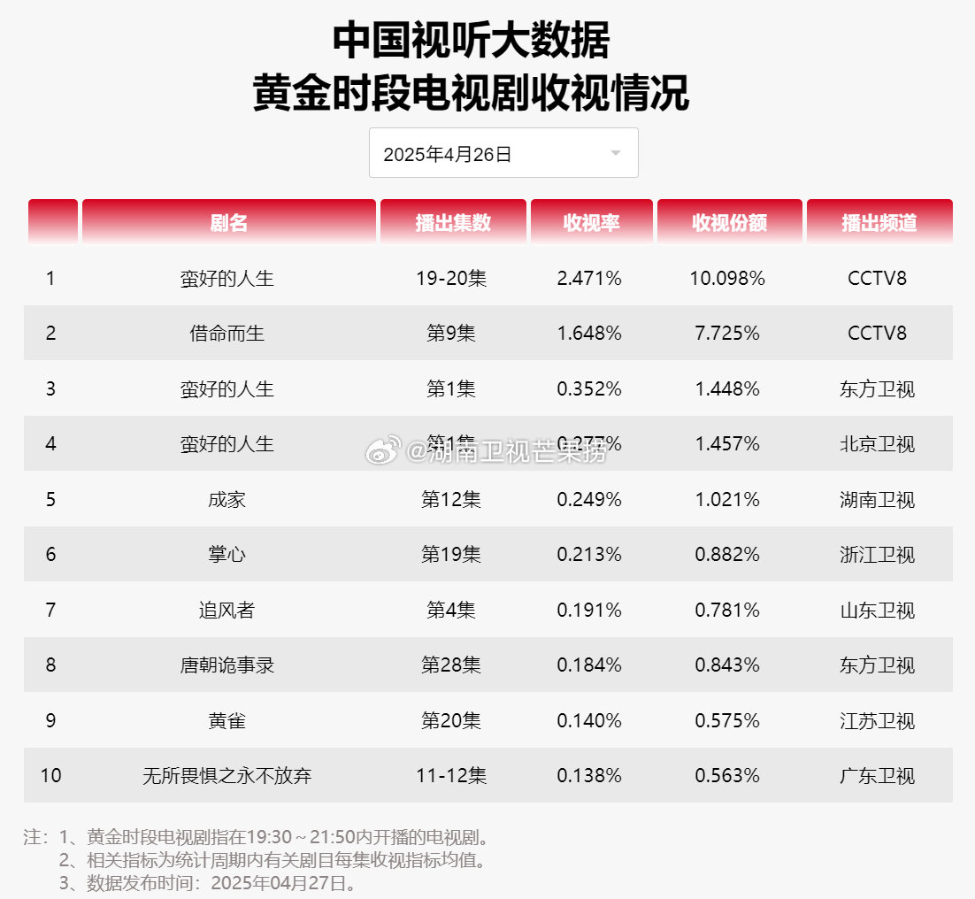 【2025年05月10日中国视听大数据CVB黄金档电视剧收视率日榜TOP10】1