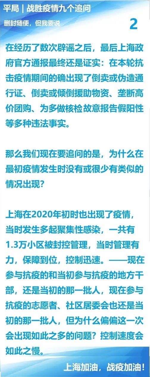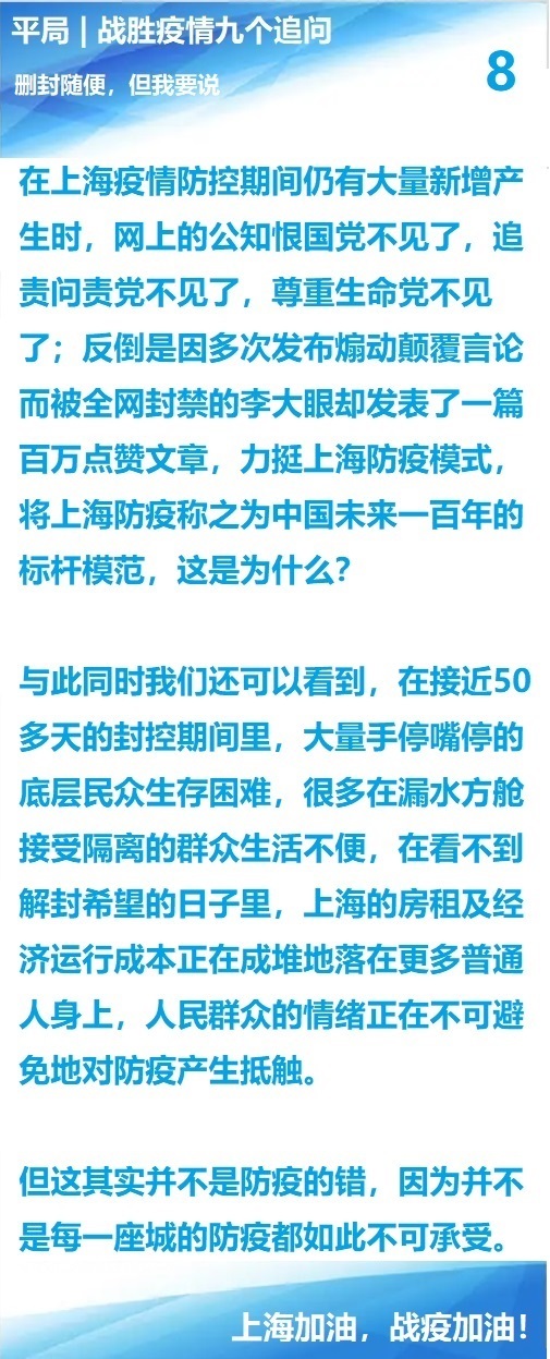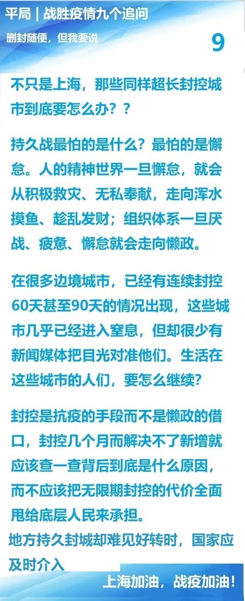 之前发的支持抗疫九个追问,居然没了,那么按照要坚决和怀疑、扭曲、否定抗疫言以及自以为是群体作斗争的指示,我再来一次九个追问,坚决支持抗疫,杜绝层层加码。不知道这次还会没了吗??´•ﻌ•`