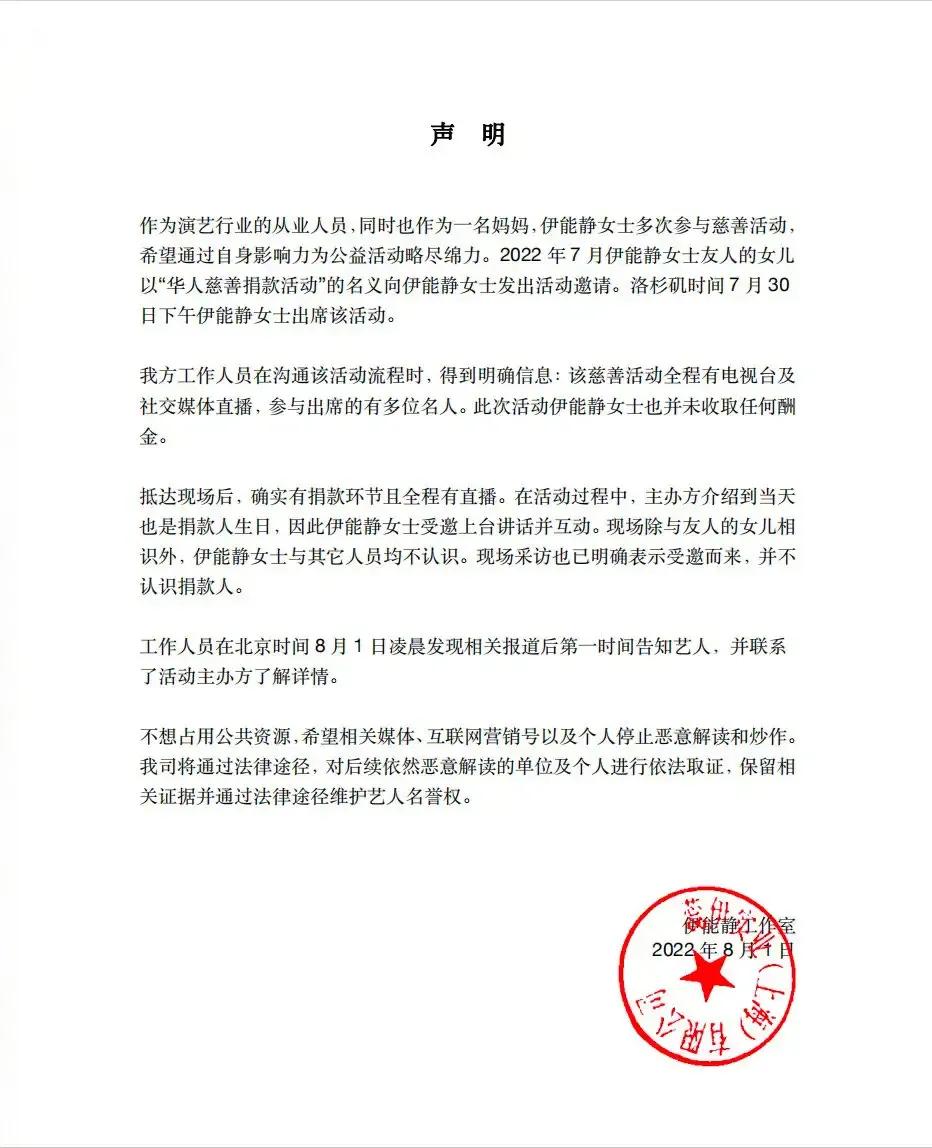 对于女星伊能静出席诈骗犯夏竹林生日宴会的事情你怎么看?根据伊能静工作室发布的声明可以看得出来,这次伊能静之所以会出席宴会,只要是因为朋友的女儿邀请她去参加的,还跟她说是慈善捐款活动,而且这次伊能静出席宴会也没有收取任何的酬金,从声明当中我们还能看得出来,伊能静除了认识那个朋友的女儿,其他人都不认识,目前这个事情已经在网上闹的沸沸扬扬,伊能静工作室还表示,目前已经找主办方了解详情了,具体的后续,后面会发布公告,那么大家看完了事情的经过以后,对于明星出席有钱人宴会这种事情怎么看呢?