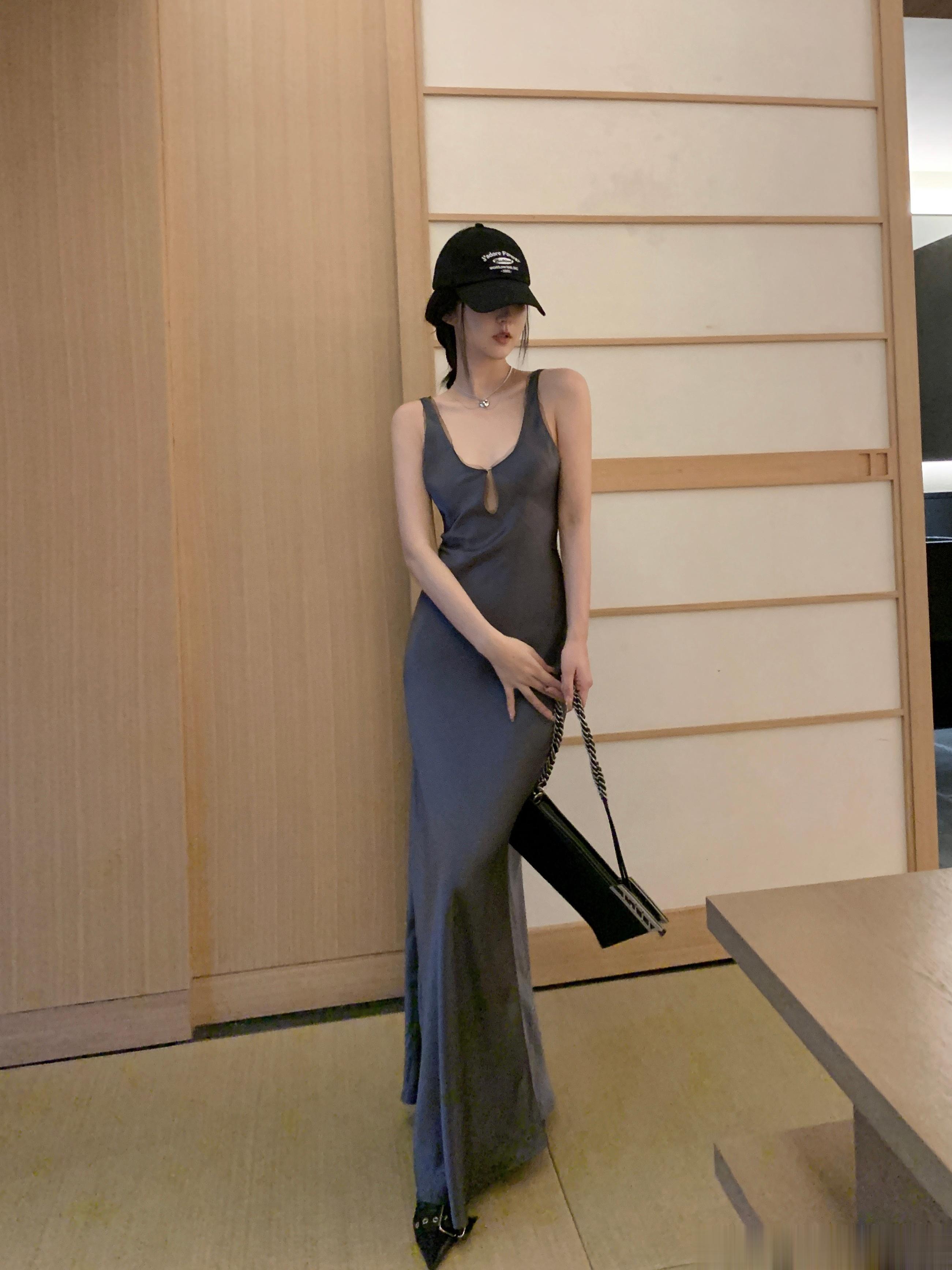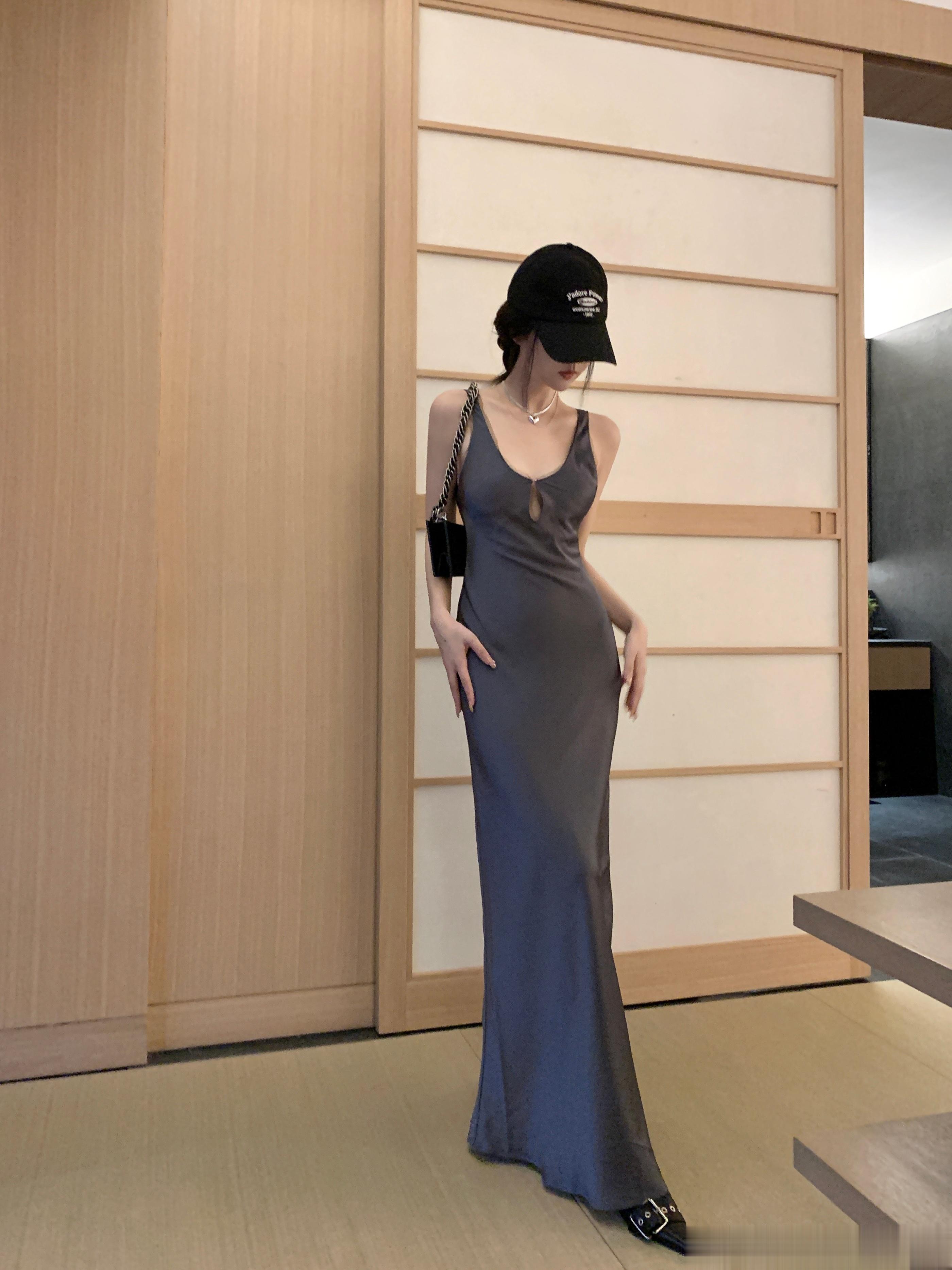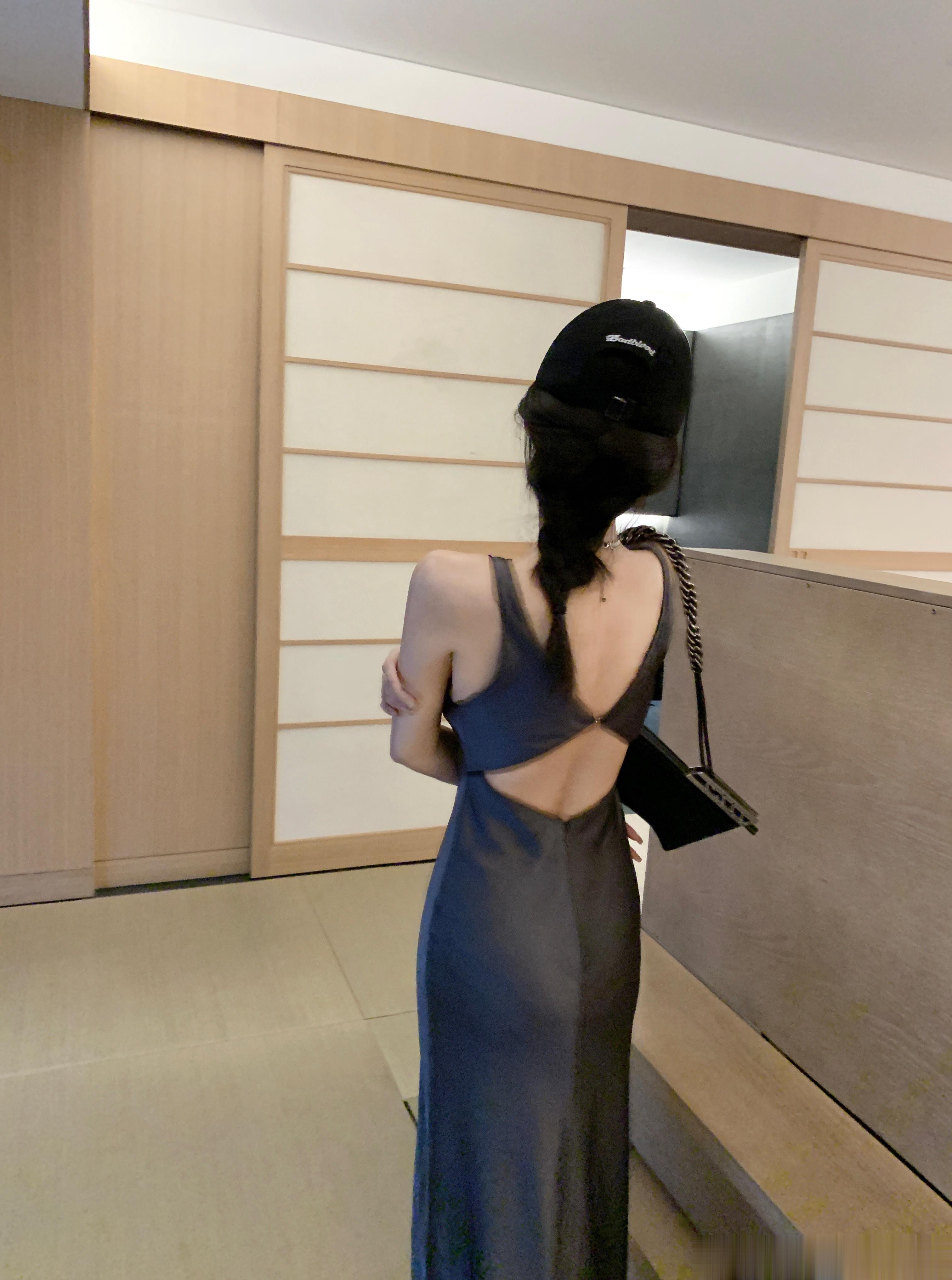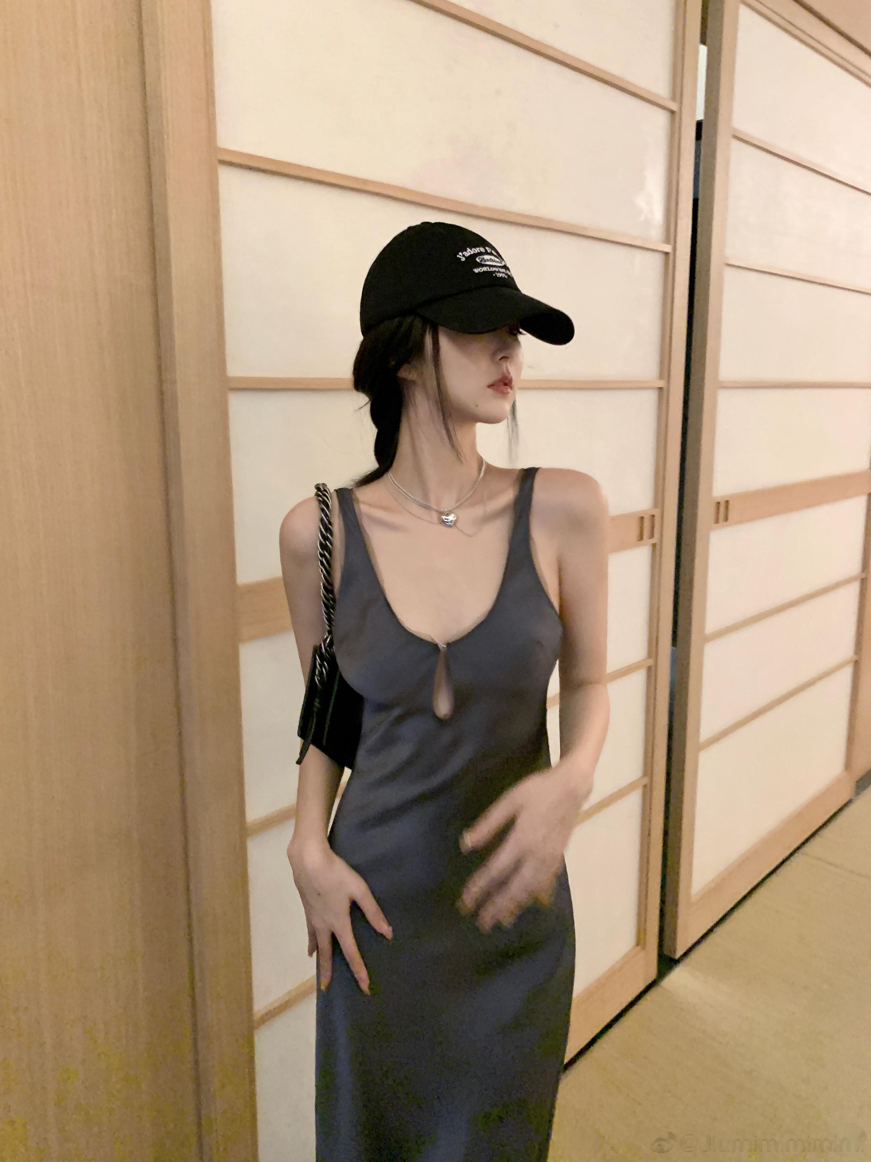 本期超爱的连衣裙 是非常好看的灰蓝色 独特的水波纹缎面 加上网纱拼接设计 穿上整个显得高挑又纤细 面料也很好打理(从行李箱拿出来的时候习惯性地准备拿去熨一下 结果一点儿也不皱 顺顺滑滑的很有光泽感)作为打底裙也超百搭 套上大大的卫衣 或者各种基础款外套都会很好看 可买👌