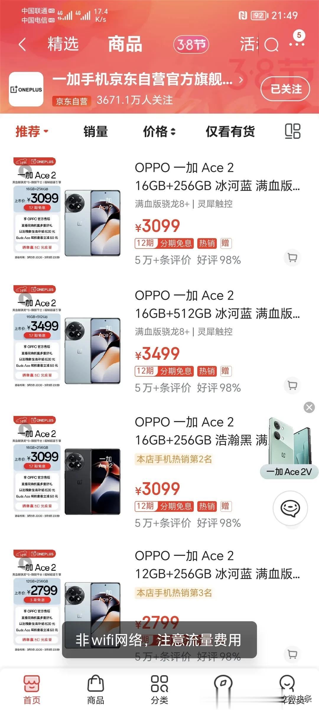 哈哈哈,一加ACE2 京东五万评论了 销量是非常棒的,红米k60还是领先的。 口碑都很不错,好评率也非常给力。 K60独有的优势,两k屏幕 无线充电以及高频护眼。 国产手机进步真的很大,加油。