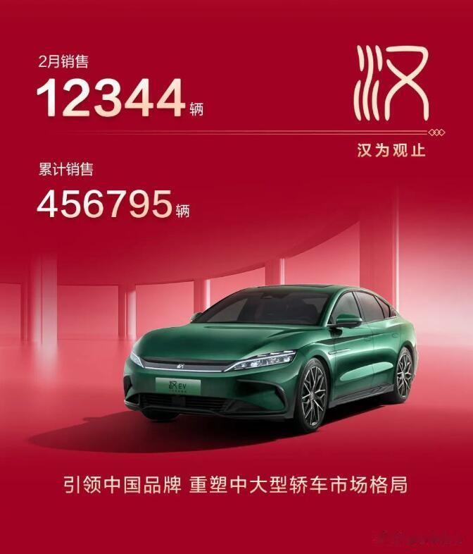 12344辆!比亚迪汉让你“叹为观止”!比亚迪汉的1月销量是1221辆,2月销量上涨到12344辆,比亚迪汉重塑了国产中大型轿车的市场格局,引领国产品牌的不断前行,历史累计销量达到了456795辆!比亚迪汉的一年二手车保值率是62.76%,2022款车型的口碑得分是4.51分、AH100专业评测得分是78.7分。