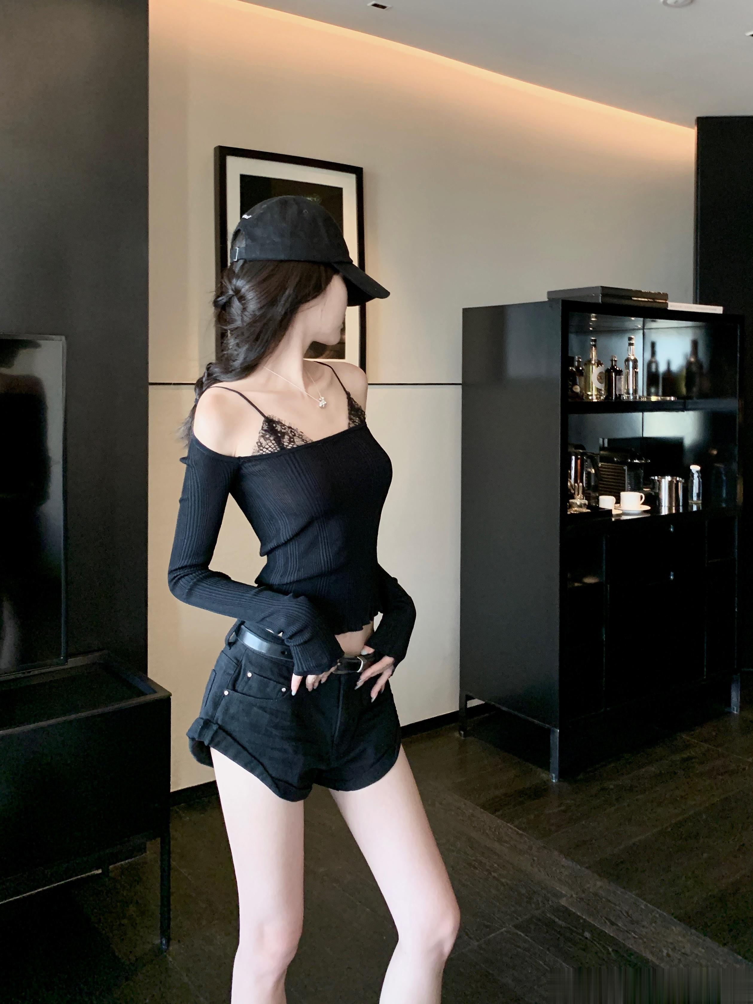 这条最绝的是 在脚口做了翻边设计 大腿两侧抬高 容易走光的中间部位降低