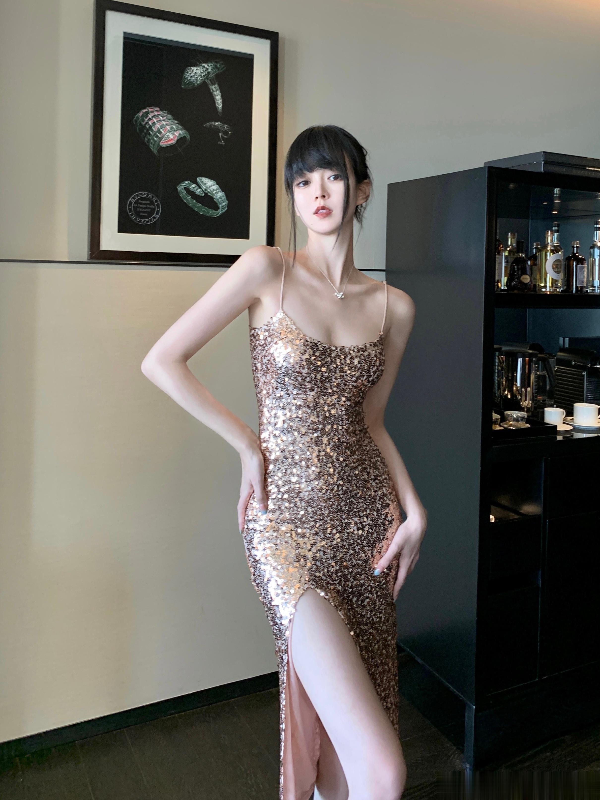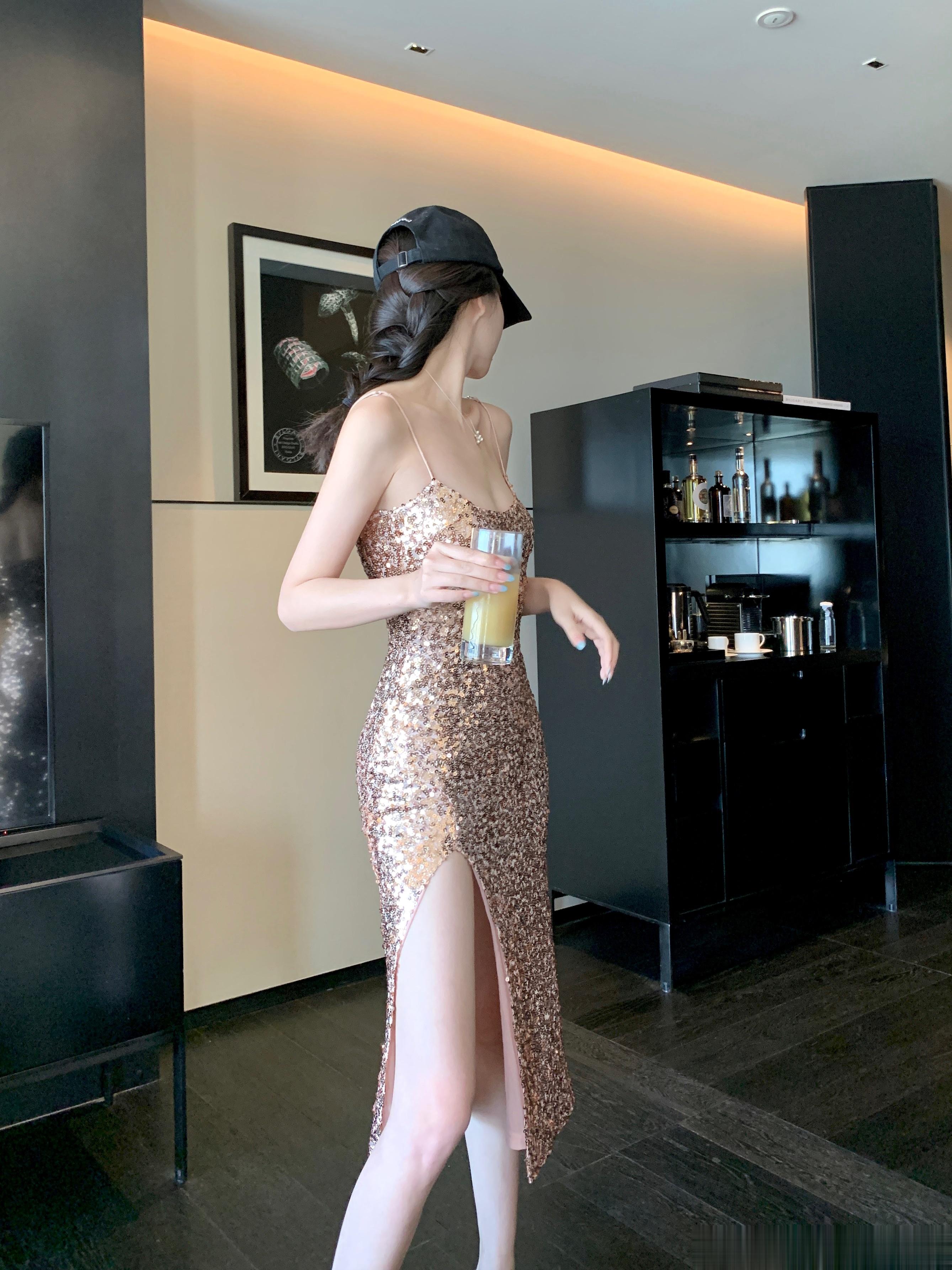 版型上做的是 远距离细肩带 高开叉(放心 不容易走光) 收腰提臀露锁骨 完美展现好身材✌️