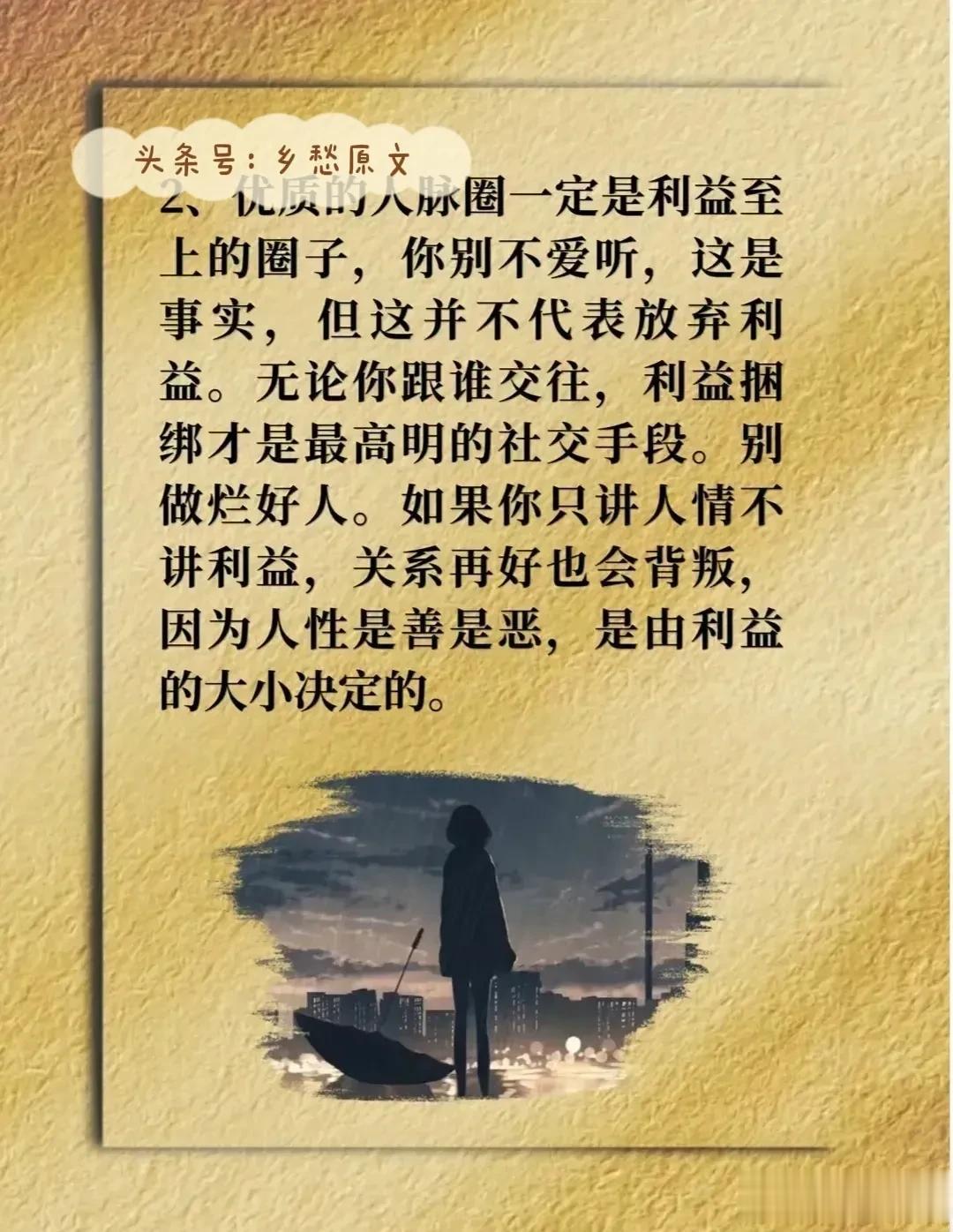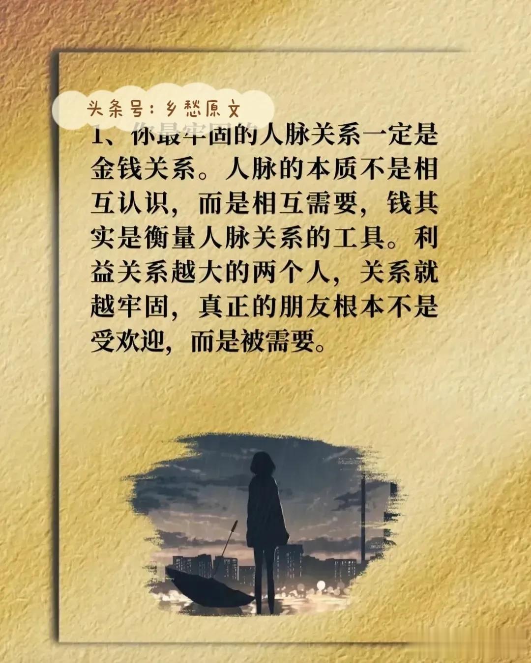 太精辟了!任何关系,一旦开始玩心计就没劲了,图人就不要说钱,图钱,咱就不提人。简