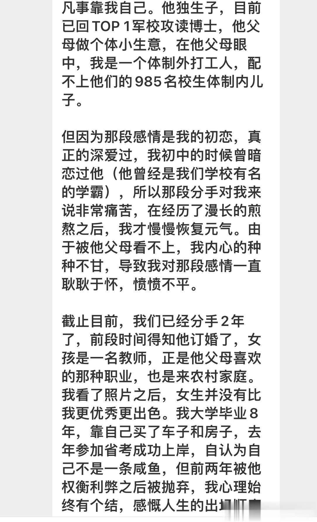 你的前男友做为一个中产男,每月收入就是固定领一份工资,其实也是非常没有安全感的,(他的条件)更不可能为你来兜底,择偶上面权衡利弊也是没有办法。这样的男人对伴侣的家境和工作有要求,其实也是这个社会的常态。