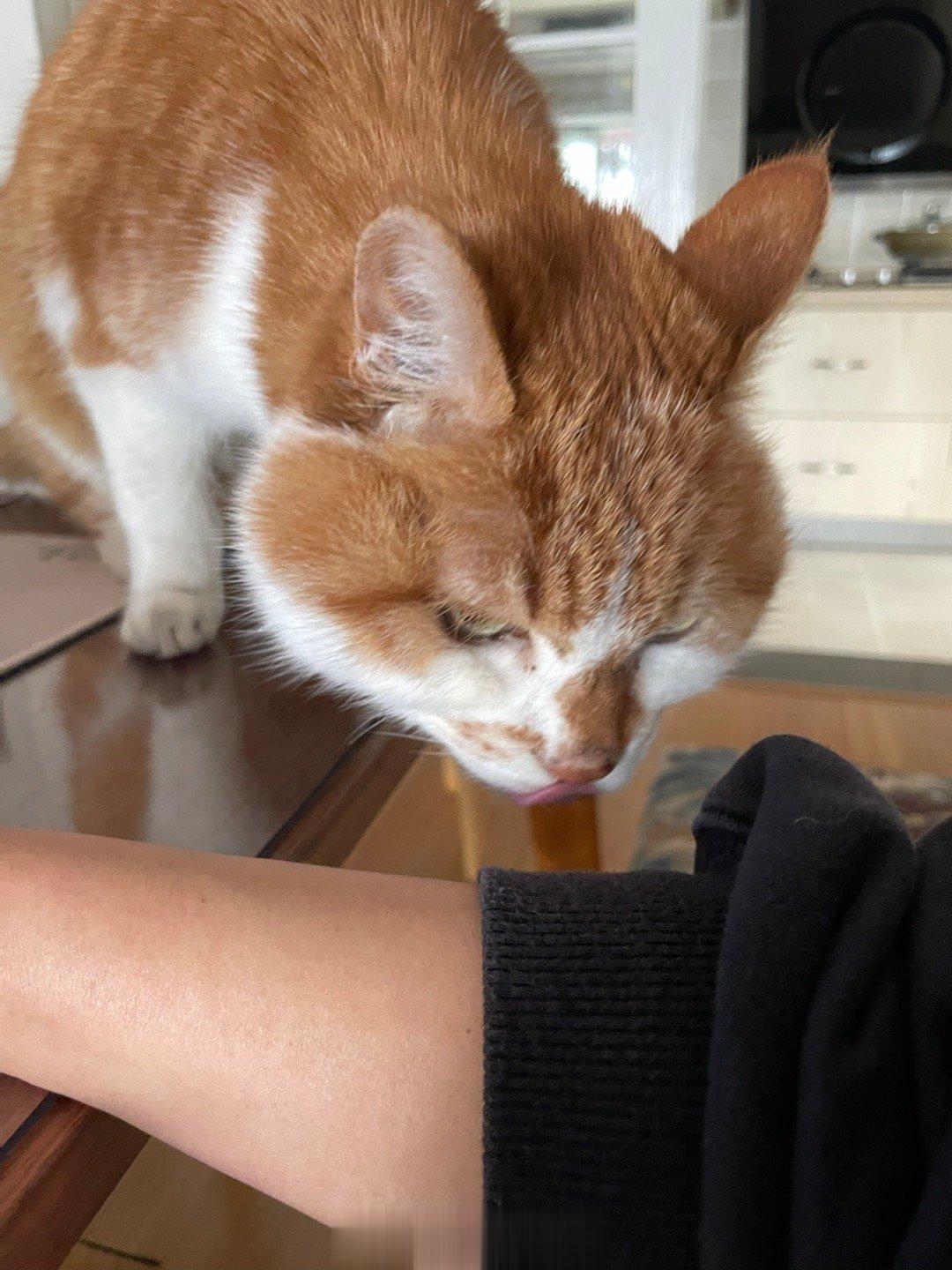 杨斑斑睡腿弯挺开心的,我翻个身被嫌弃了,爬上腿来压住!