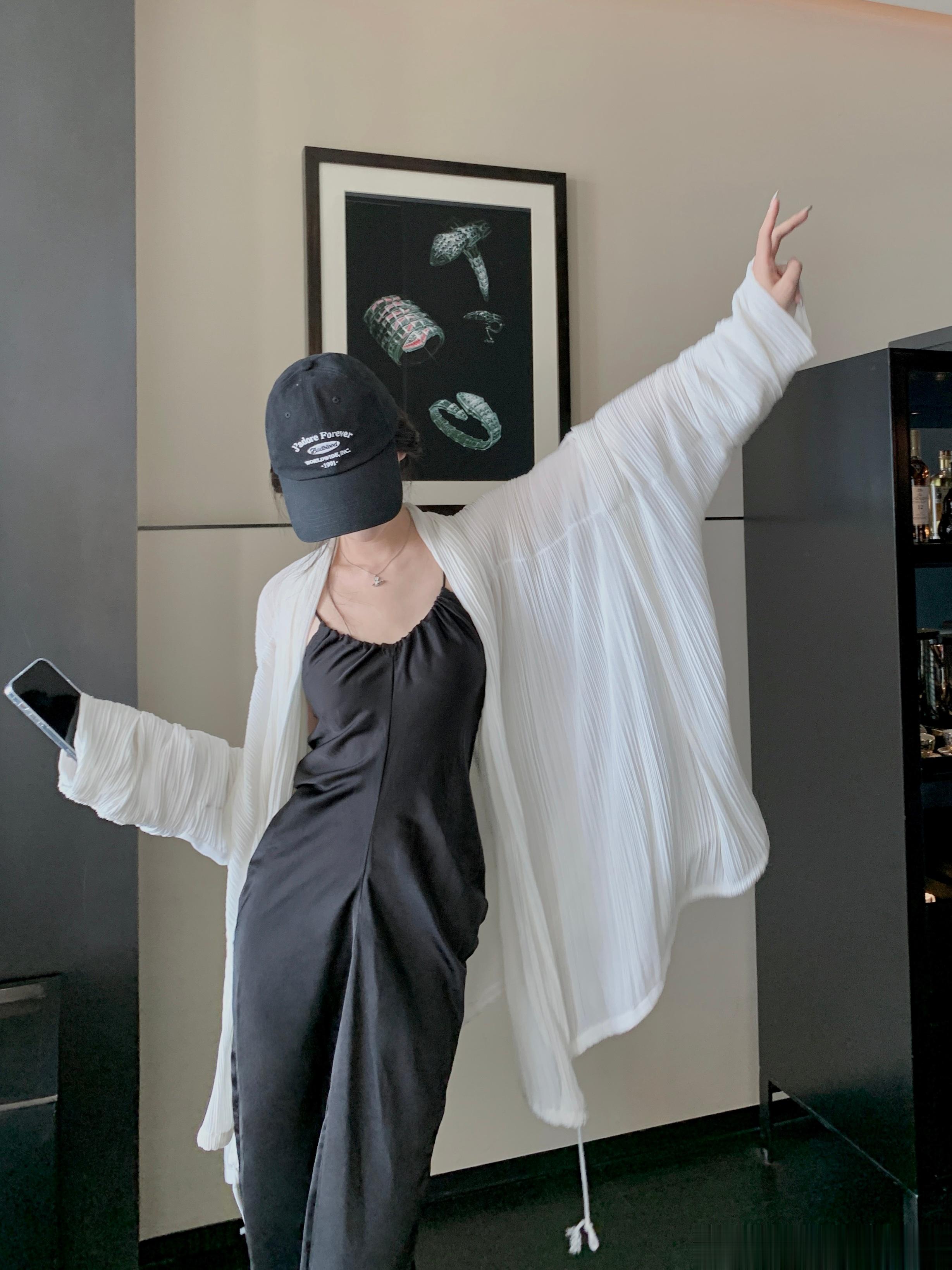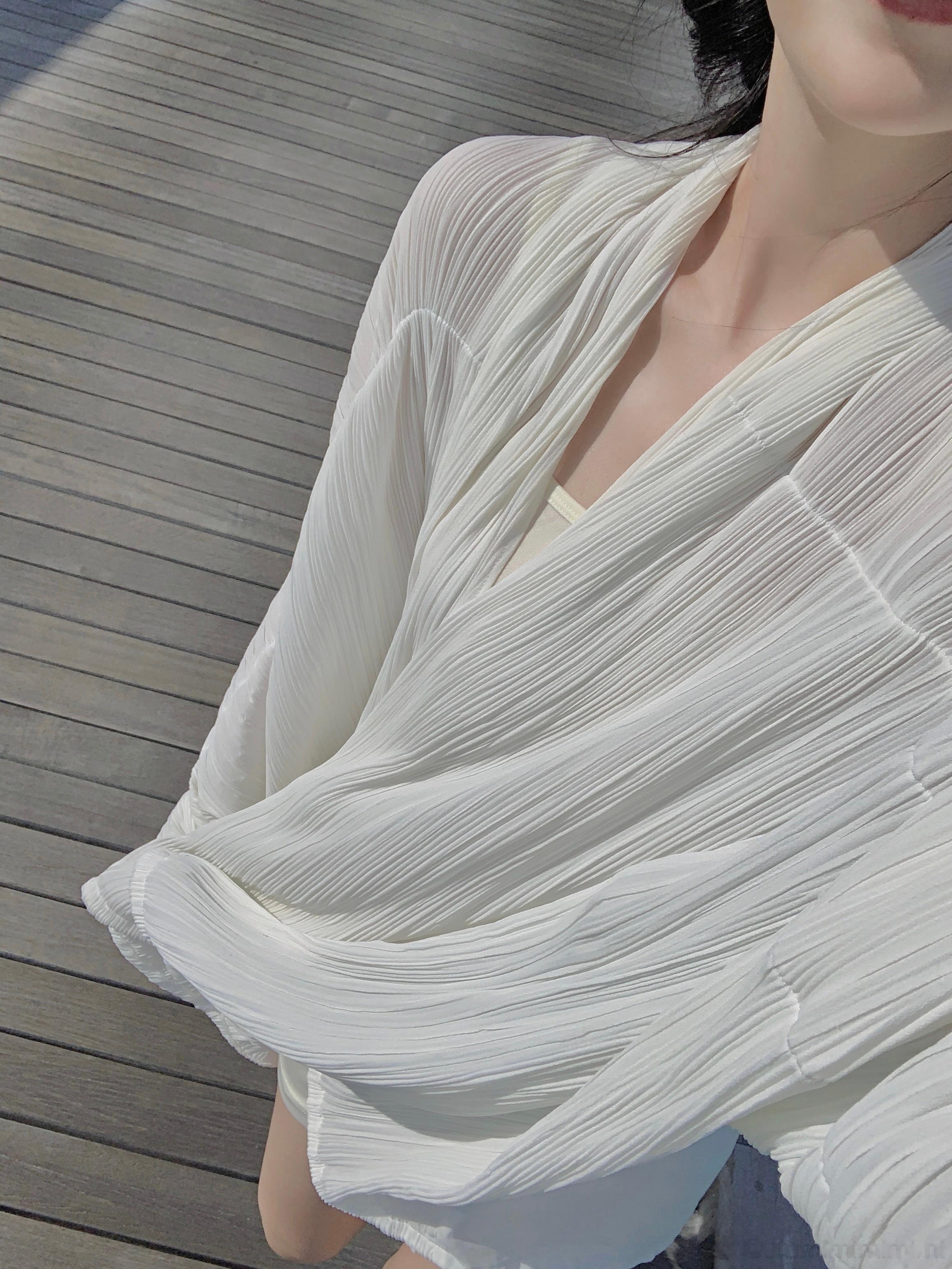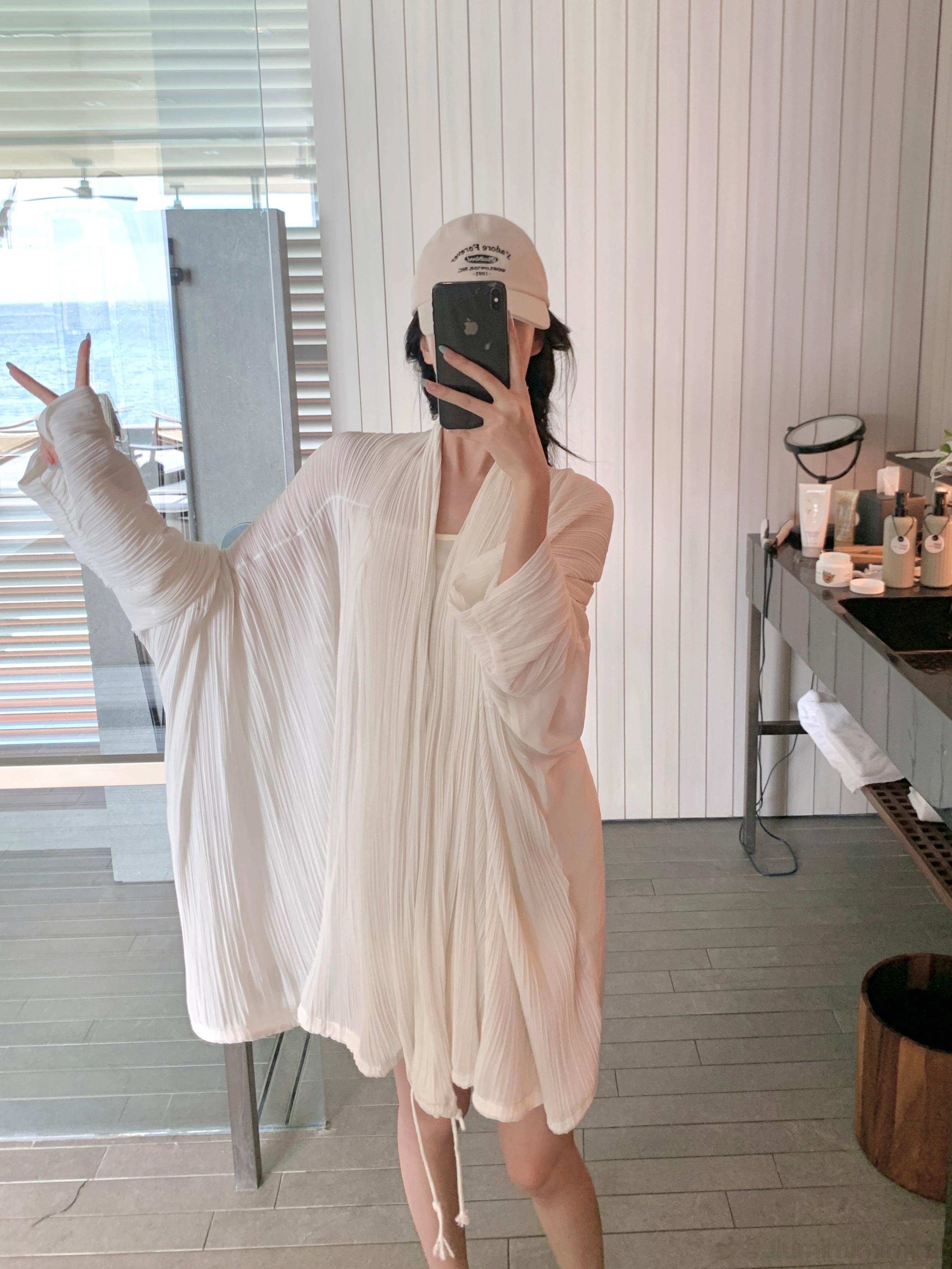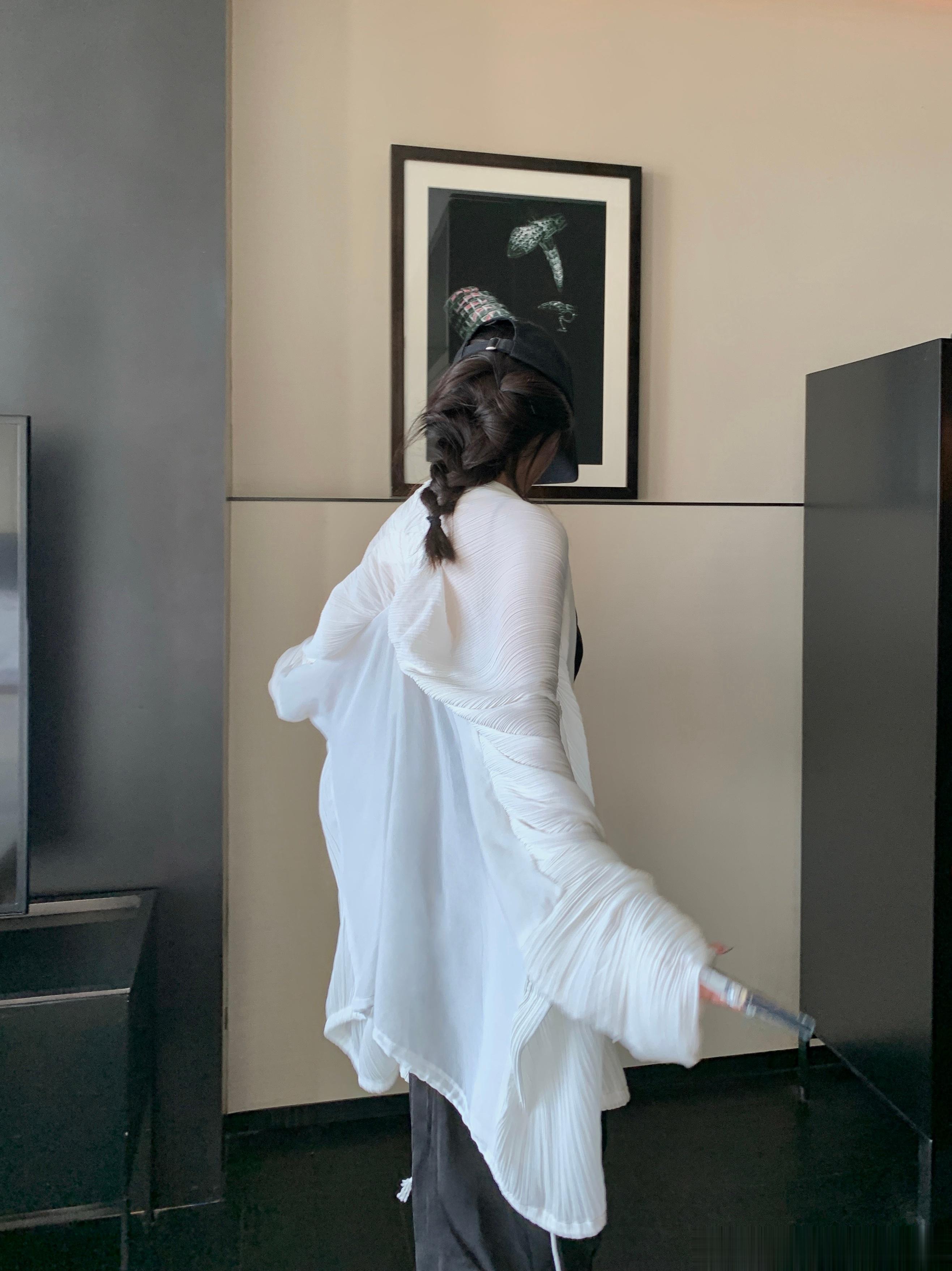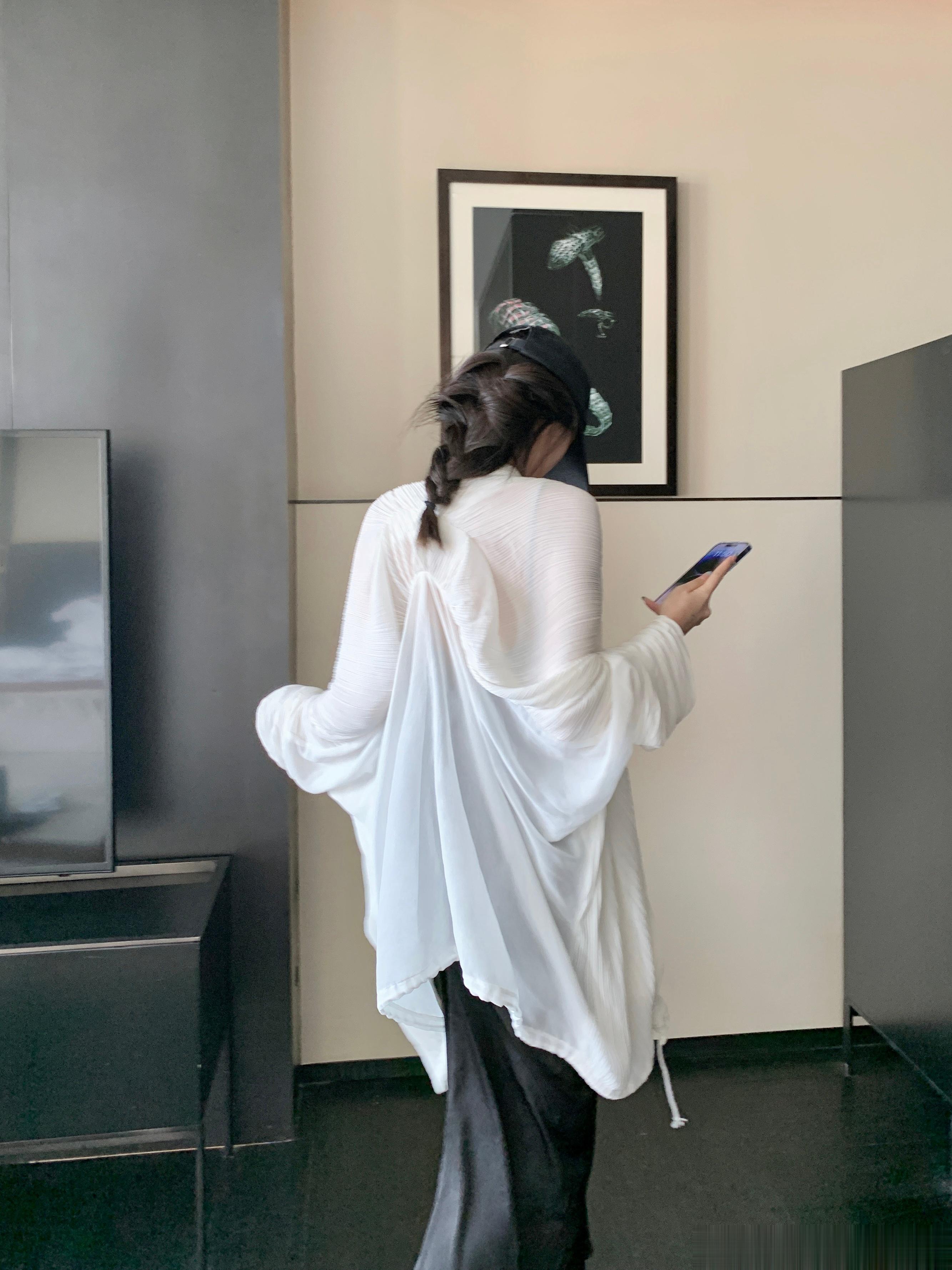 全定制压褶面料 后片拼接雪纺 轻薄且垂感超好 做的是大蝙蝠袖版型 一整件面料3米