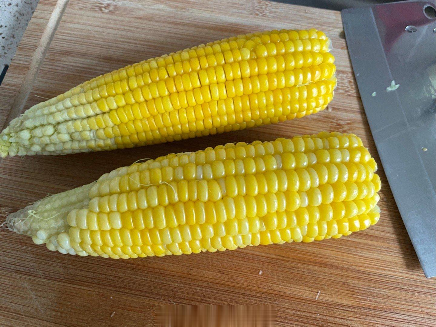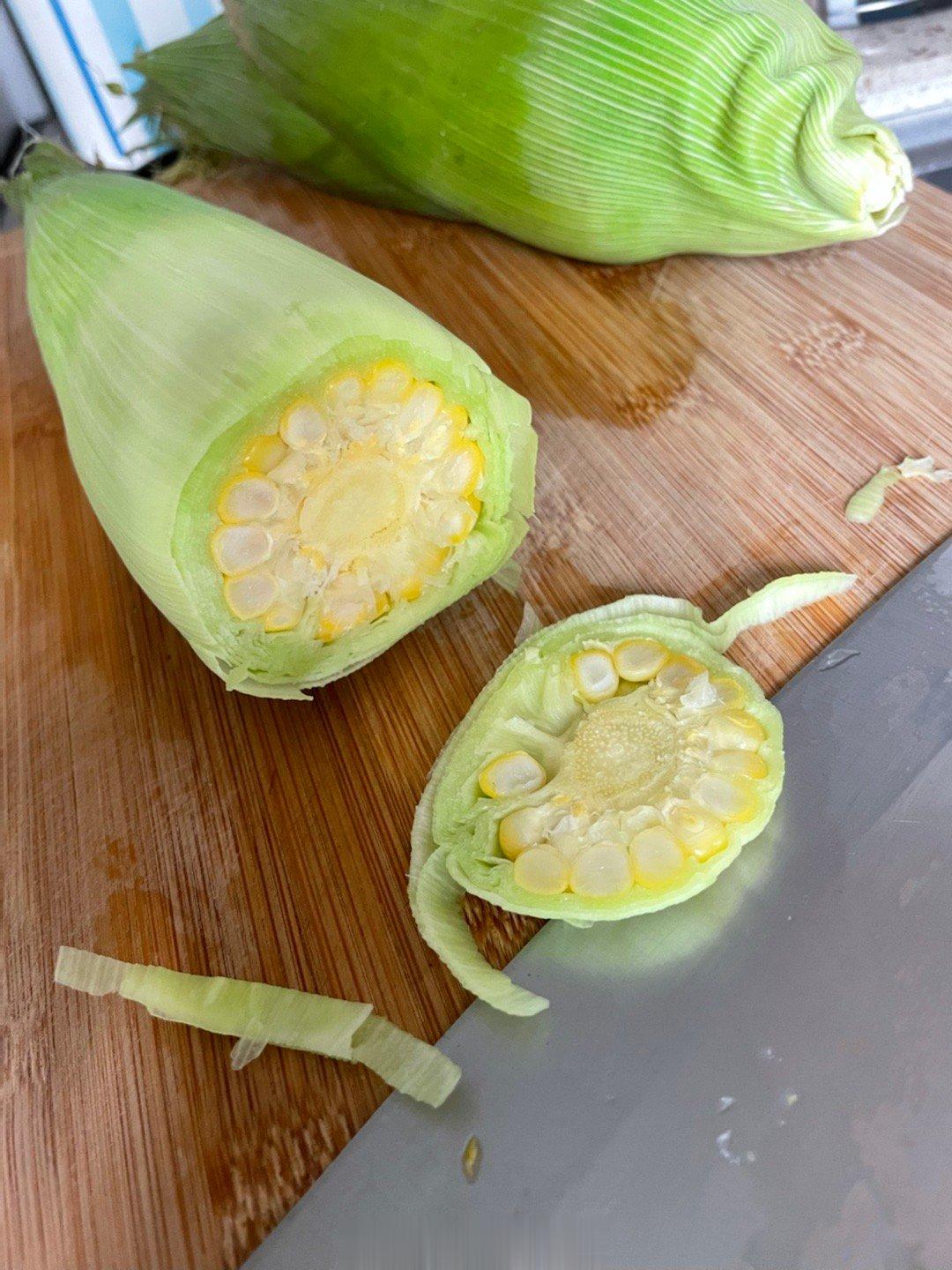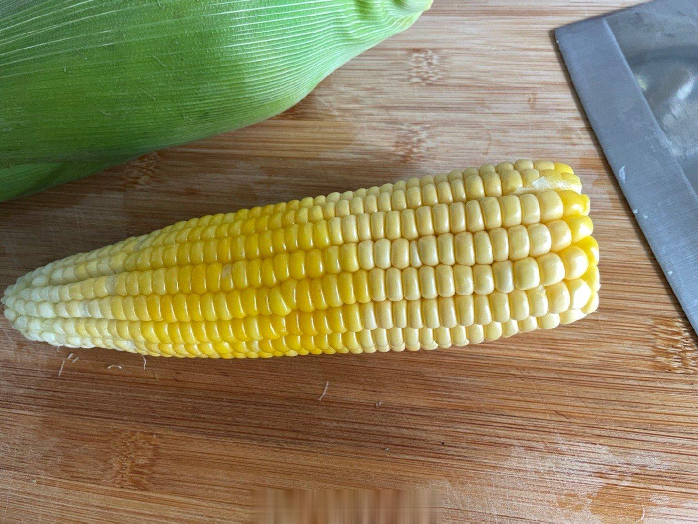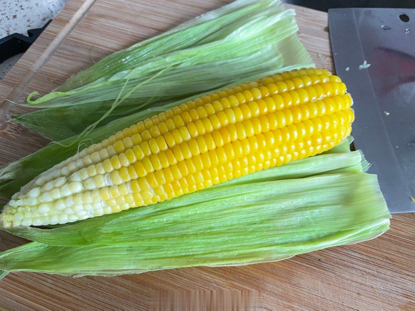 用网上学的方法叮玉米,外皮不剥直接微波炉叮了5分钟,头部切一刀,啊哦切太少了,再切一刀,把外皮褪掉,肉眼可见的半截不熟,可能外皮太厚了,再包回去叮2分钟,成功!下次可能先剥几层皮再进微波炉。