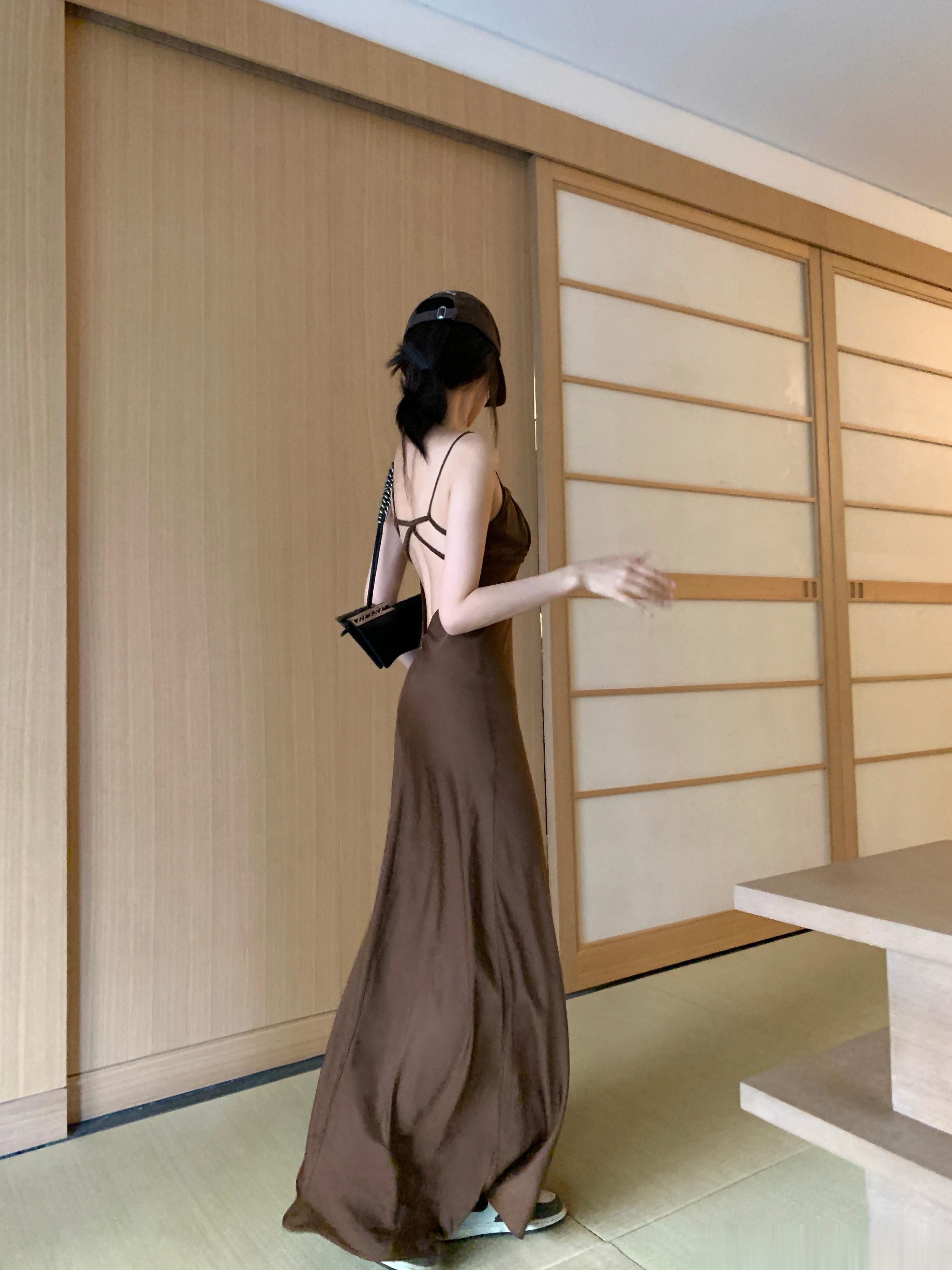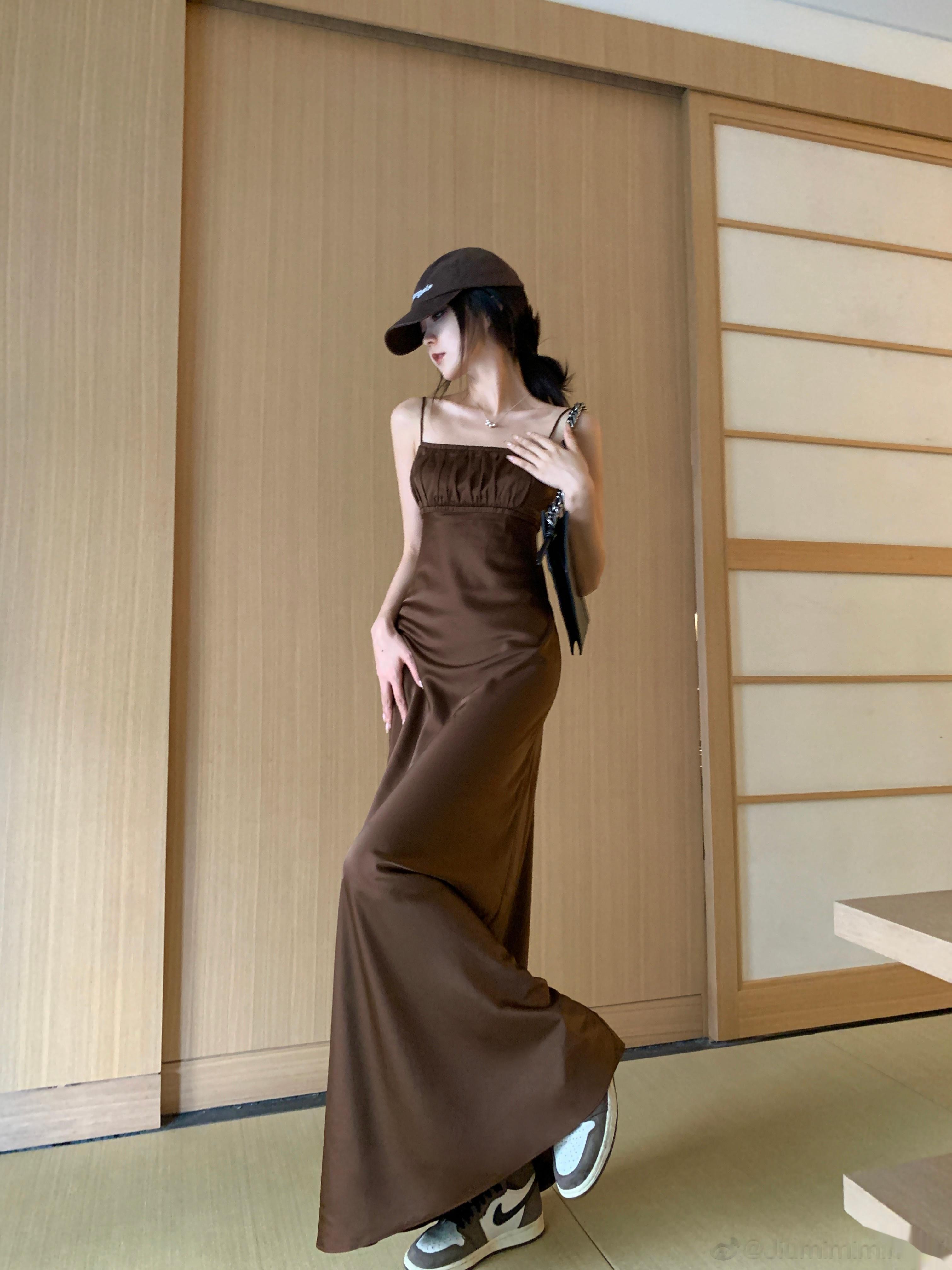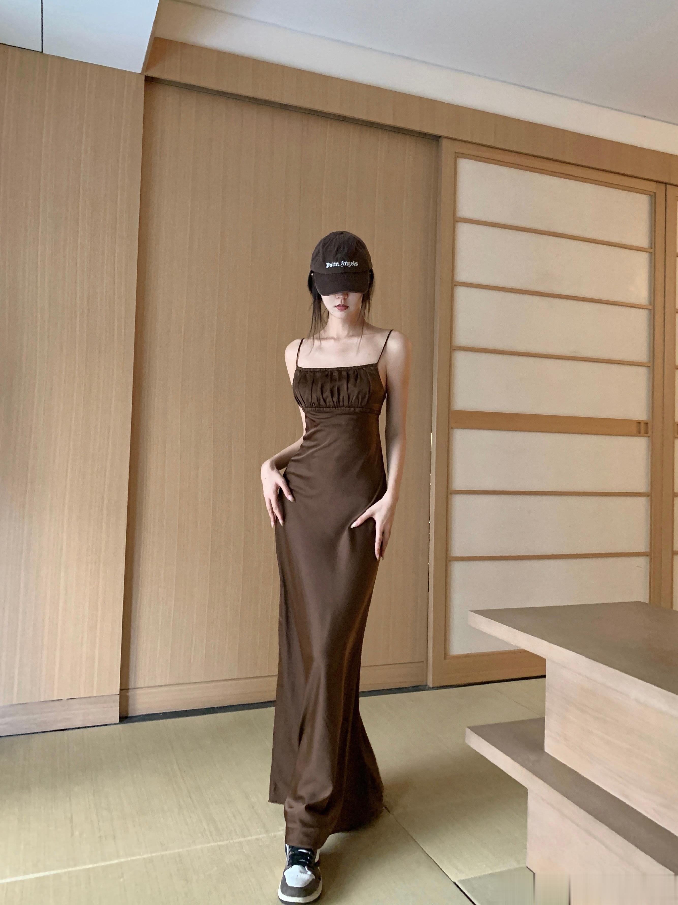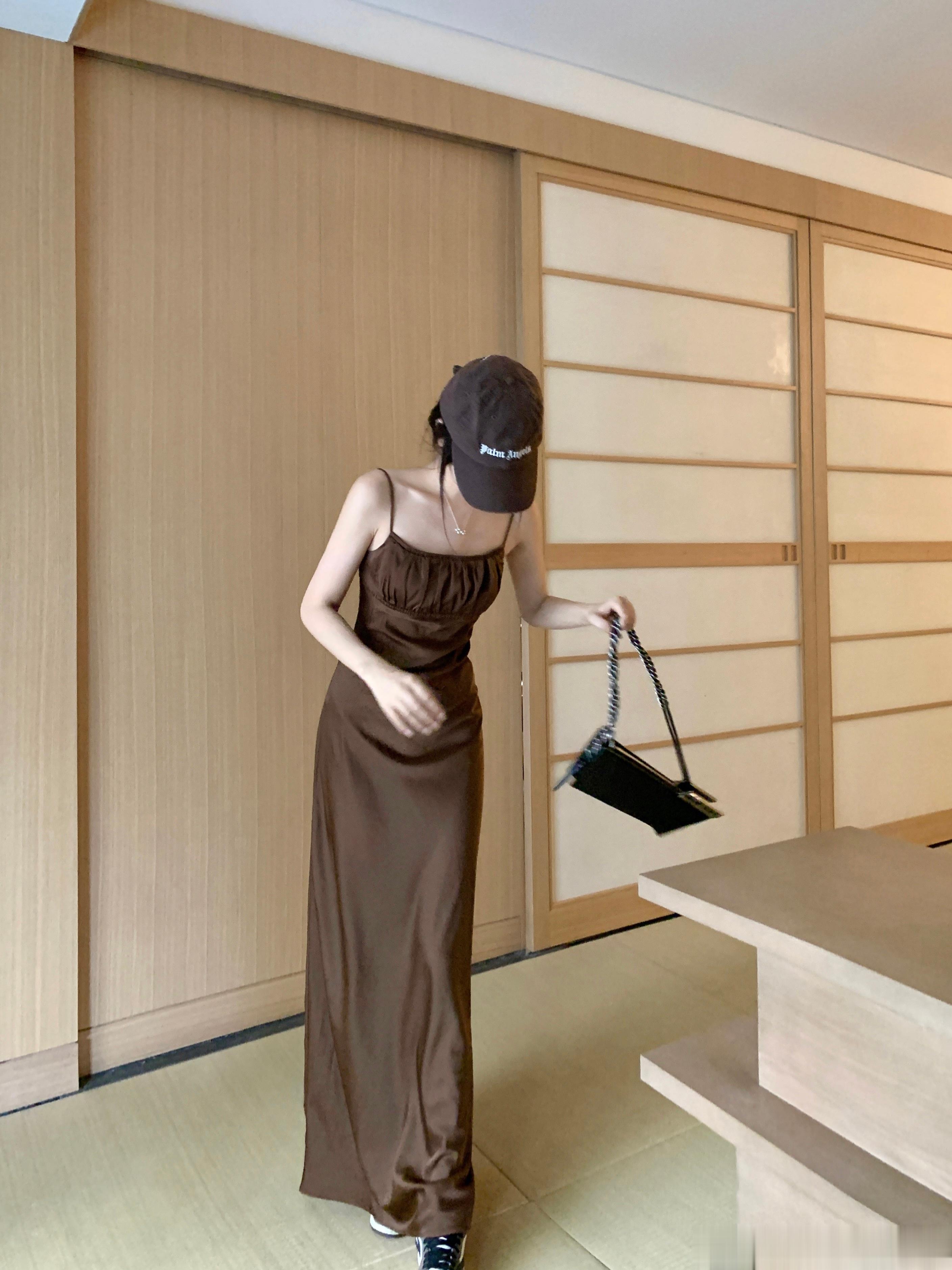 面料垂坠感很好 实际上裙摆还蛮大的 用料足够 走路带风的感觉