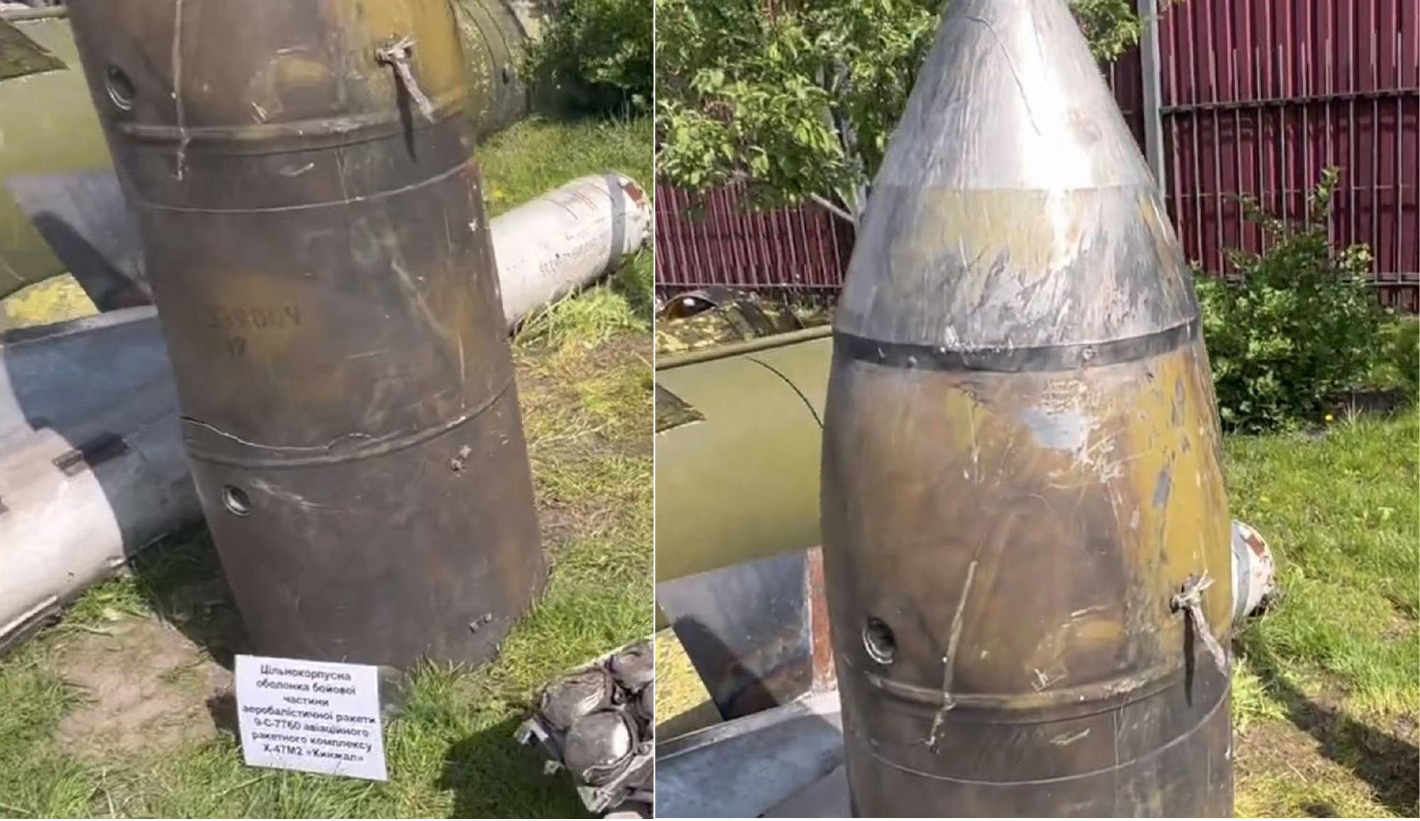 由于需要侵彻坚固目标,所以 BetAB-500ShP的战斗部外壳的前端被设计成了一个非常的厚重的金属锥体,而战斗部主要的装药都在弹头的中后部分,基辅方面捡到的这一坨,恰巧就是 BetAB-500ShP坚固的“侵彻锥”,校尉判断这应该是一枚已经命中过目标的 BetAB-500ShP,只是这个坚固的金属锥在侵彻目标后幸存了下来,结果被基辅当局的宣传人员拿出来作为“匕首”摆拍了[笑cry]