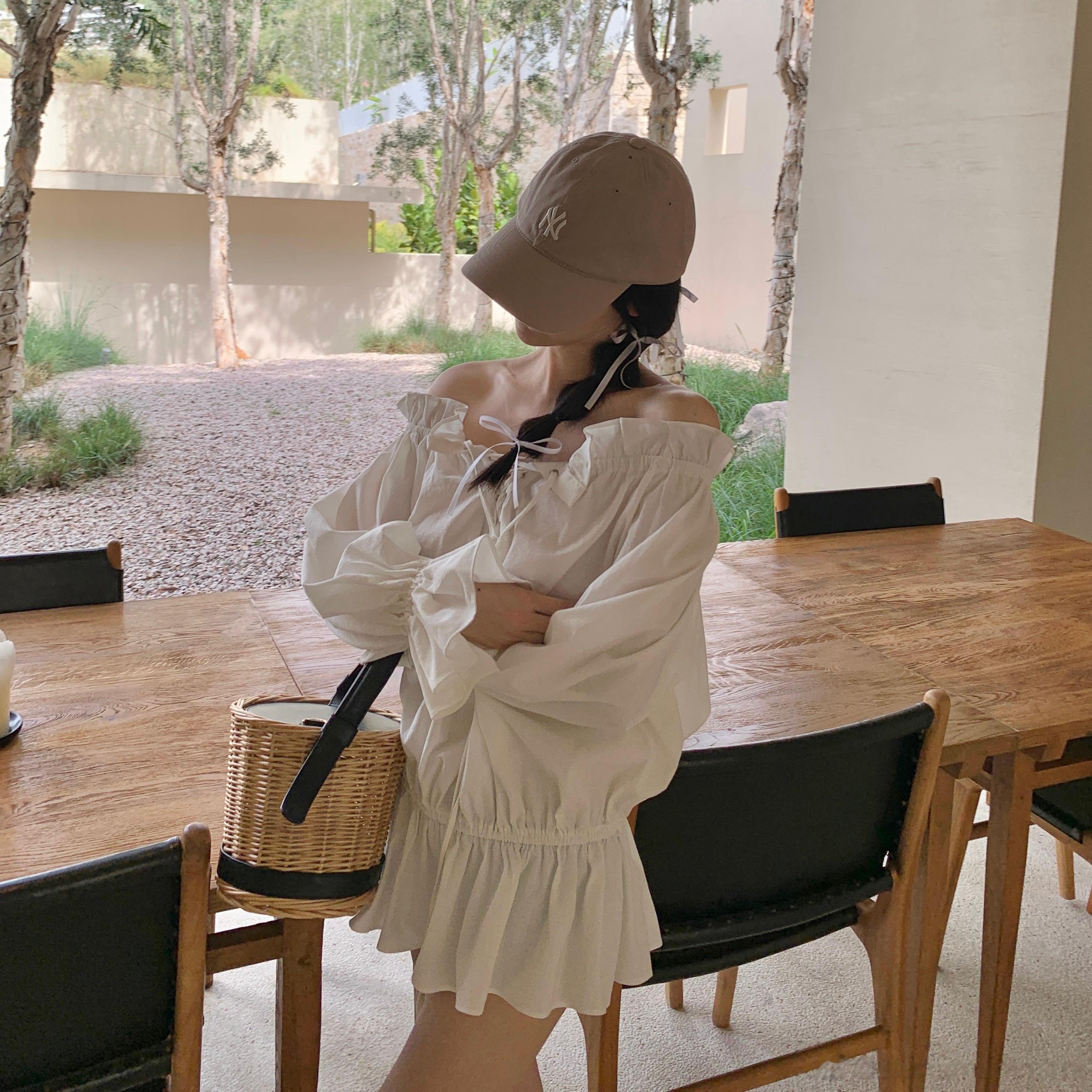 版型面料取胜!紧身包臀 圆领小飞袖 腰部褶皱设计 全都是为了显瘦显瘦显瘦!遮肉遮