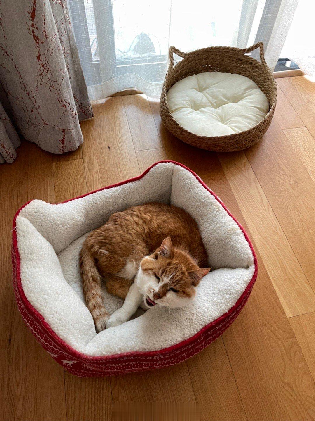 #萌宠那些事[超话]# 新窝窝,压得有点歪七扭八的,被处女座小猫咪给嫌弃了…… 你等着杨斑斑,我一会儿就把你那个脏脏窝丢了!