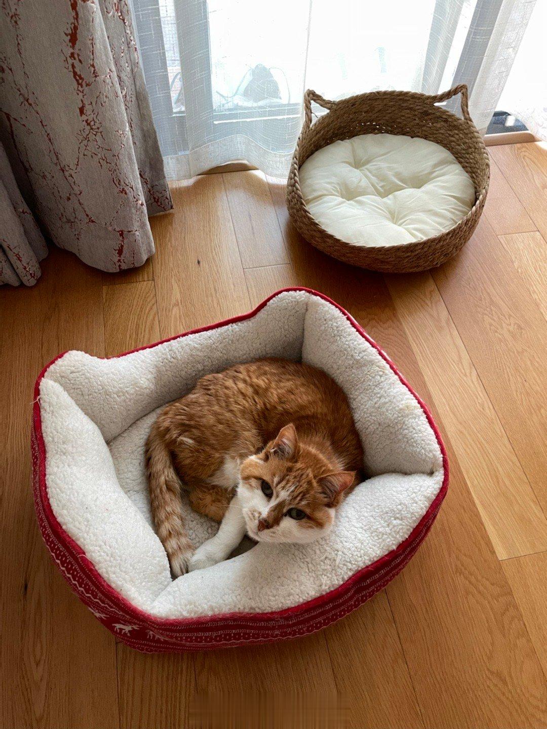 #萌宠那些事[超话]#新窝窝,压得有点歪七扭八的,被处女座小猫咪给嫌弃了……