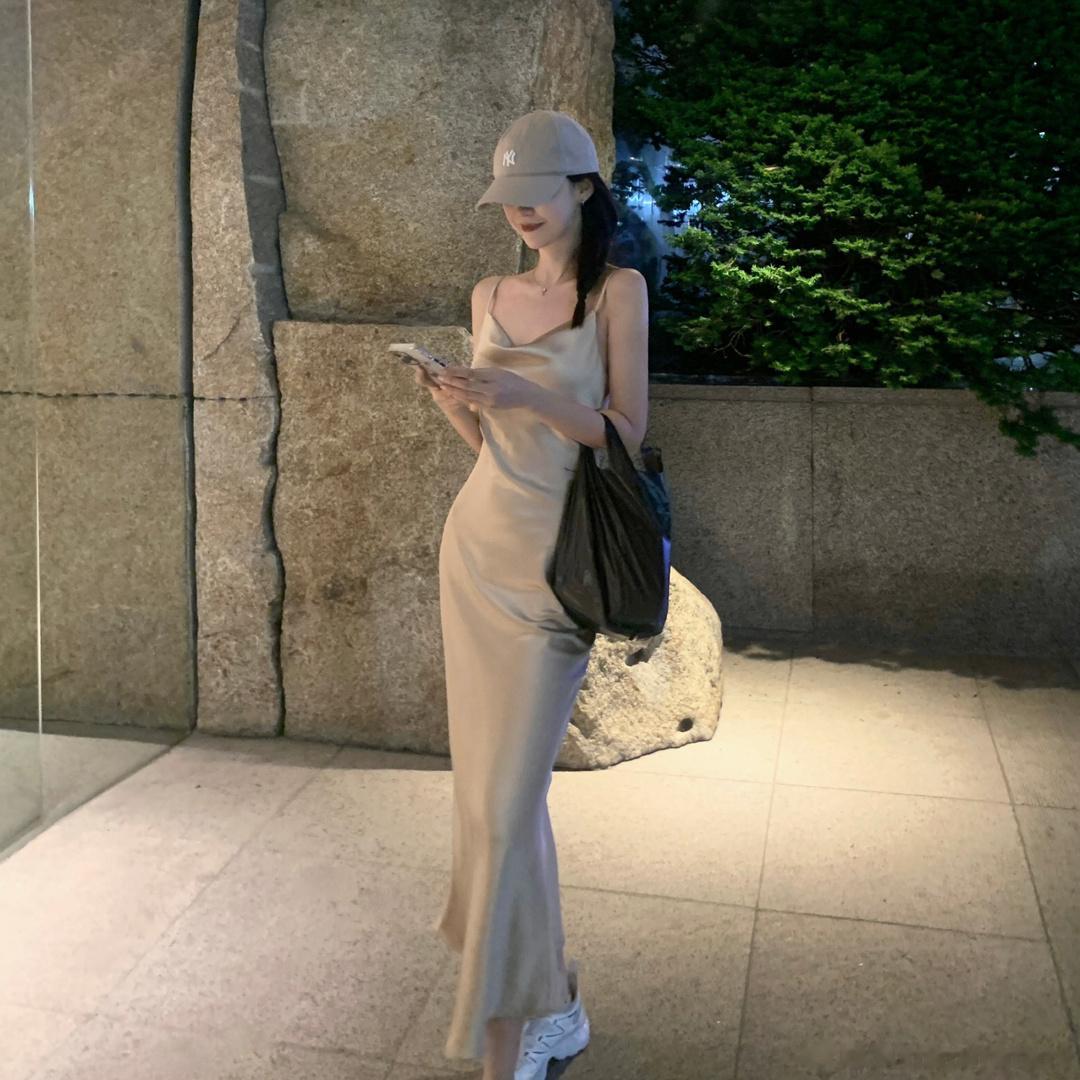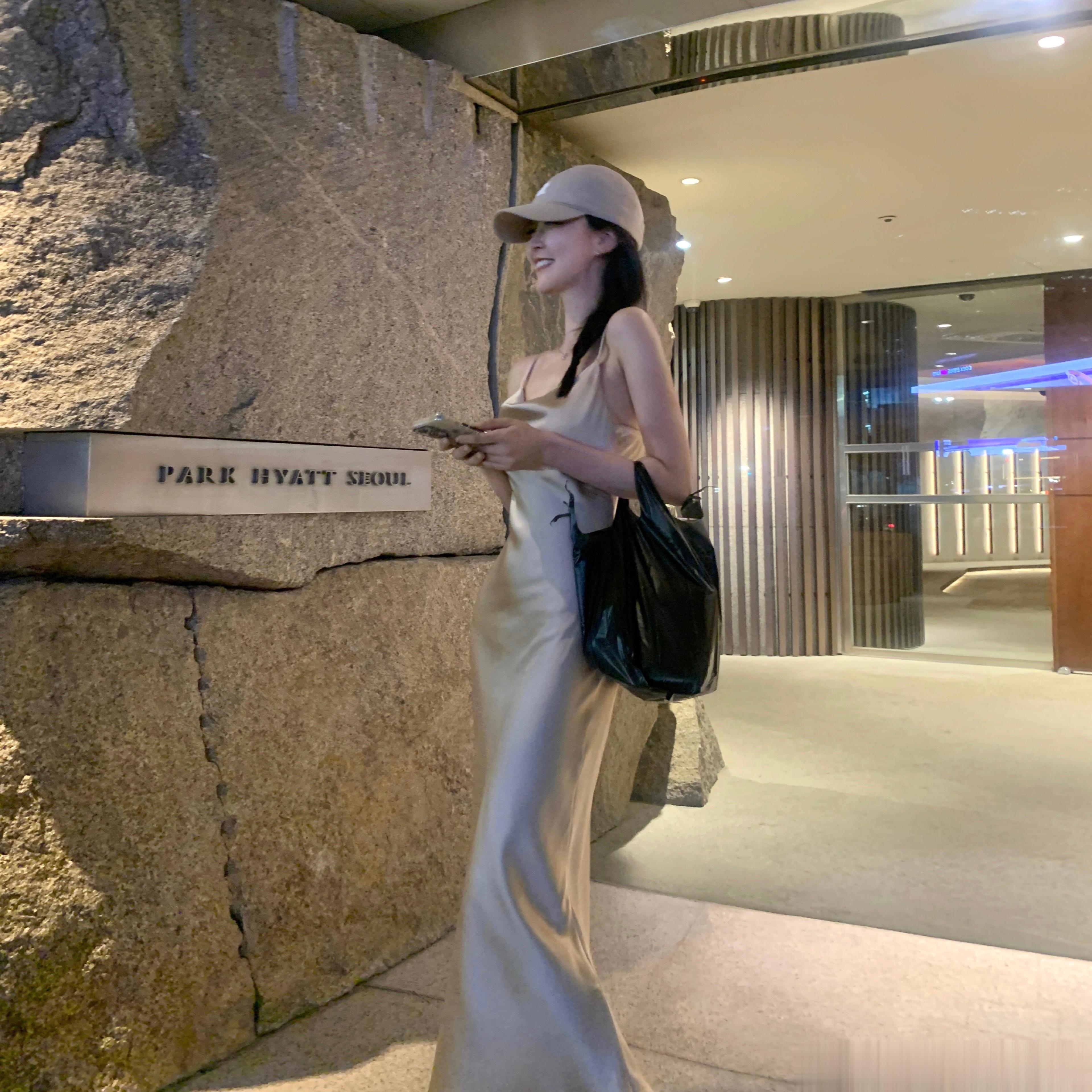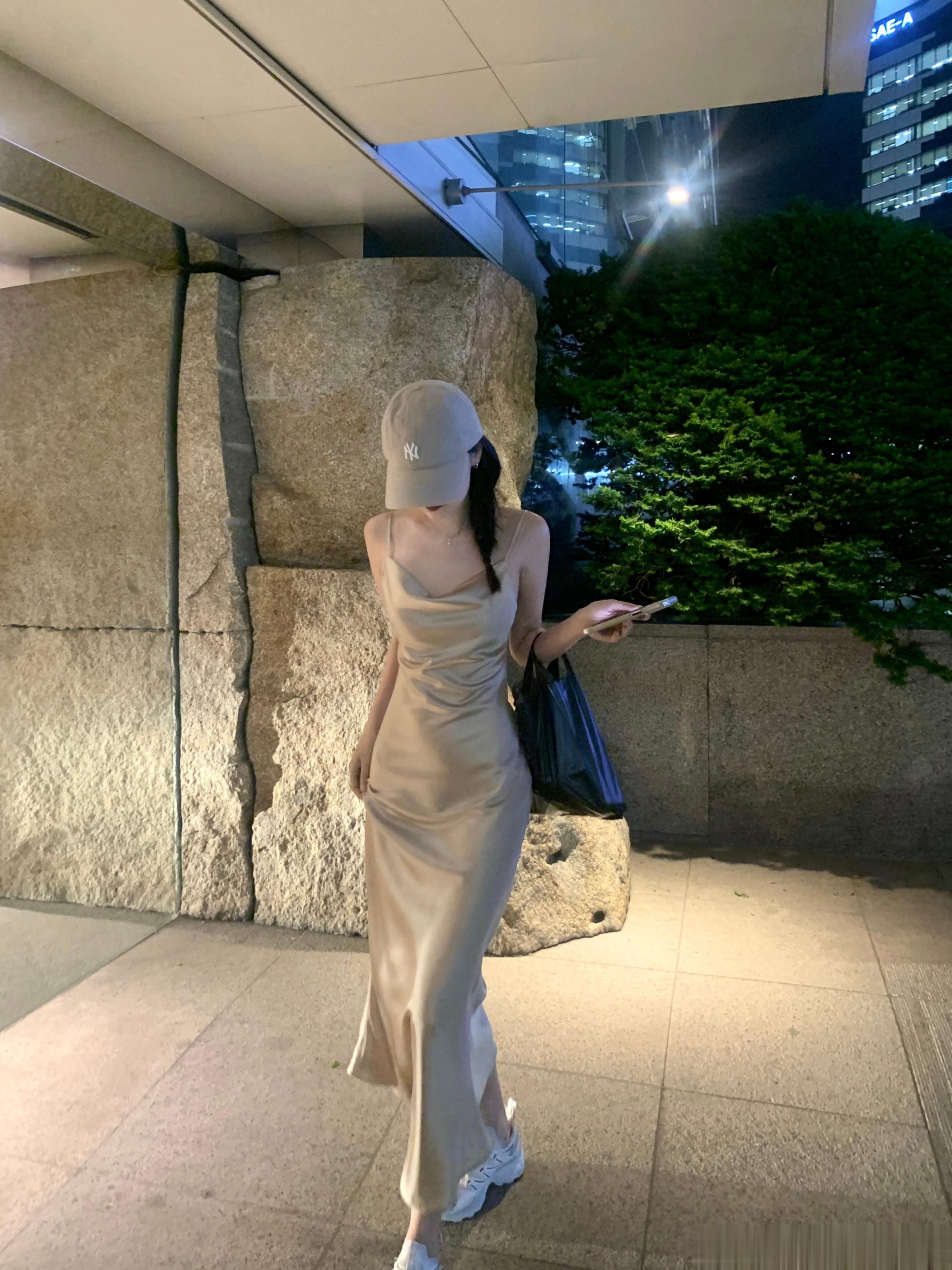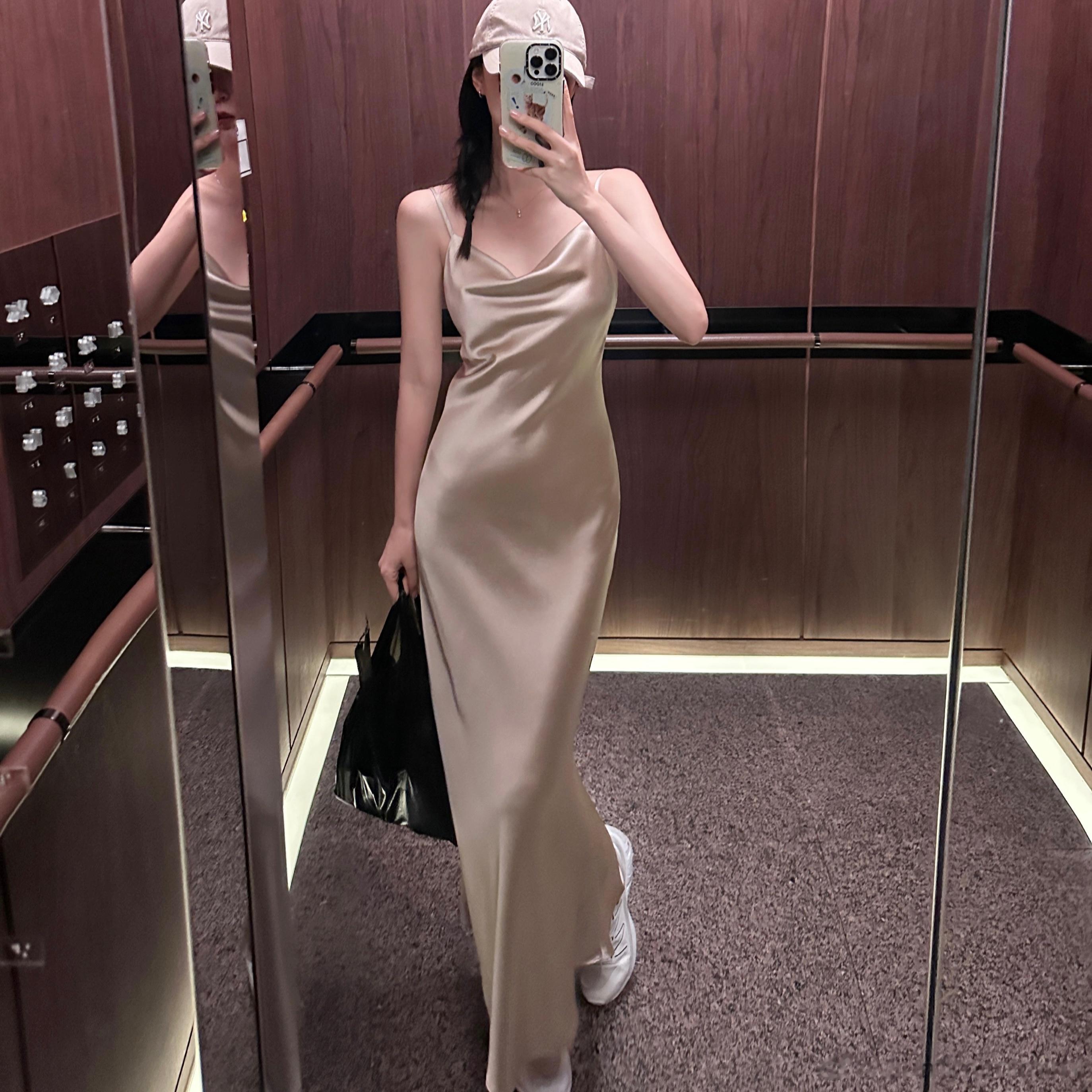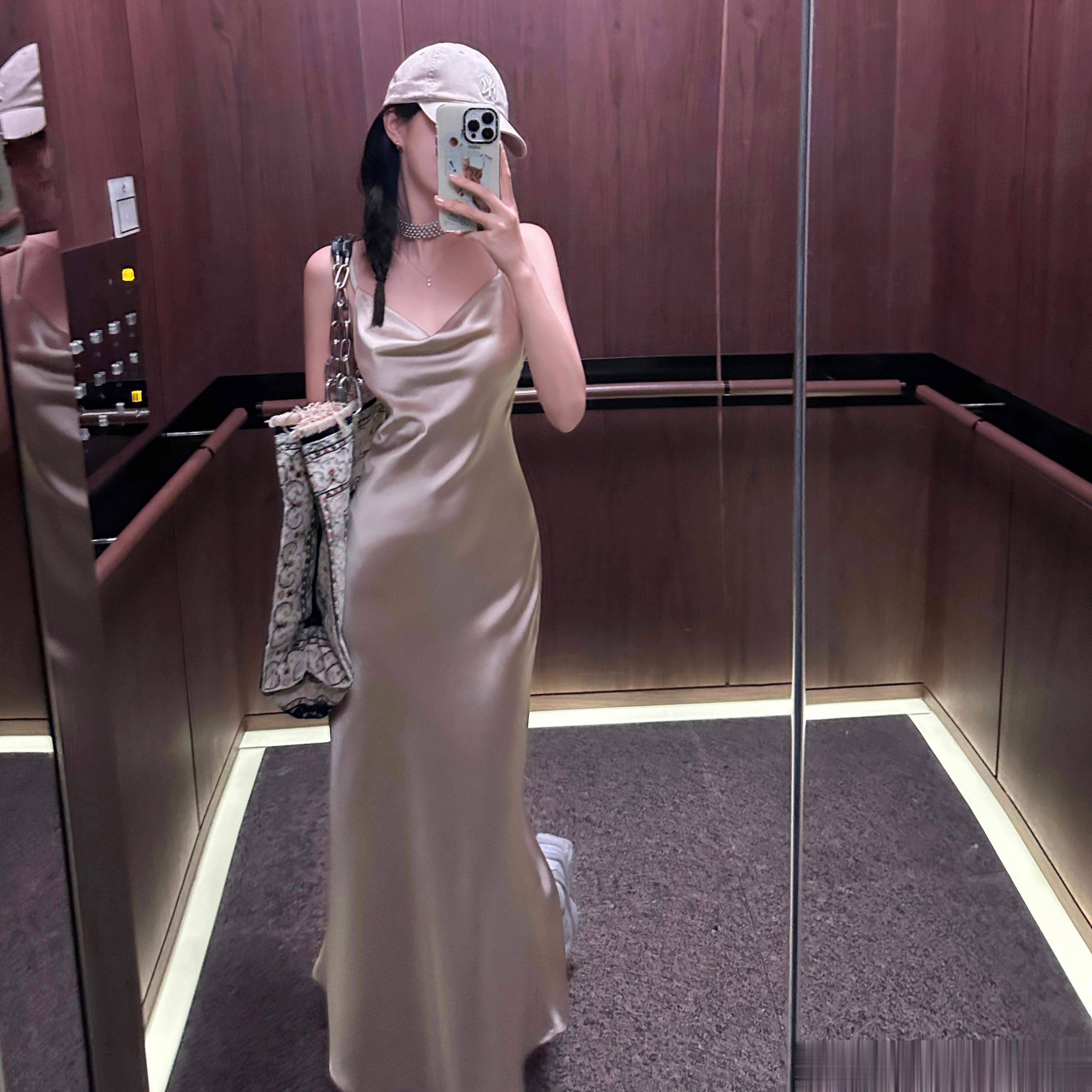 这款是A字挂脖的版型,上身很优雅后面的露背也调整了好几次在性感的同时保证不走光不