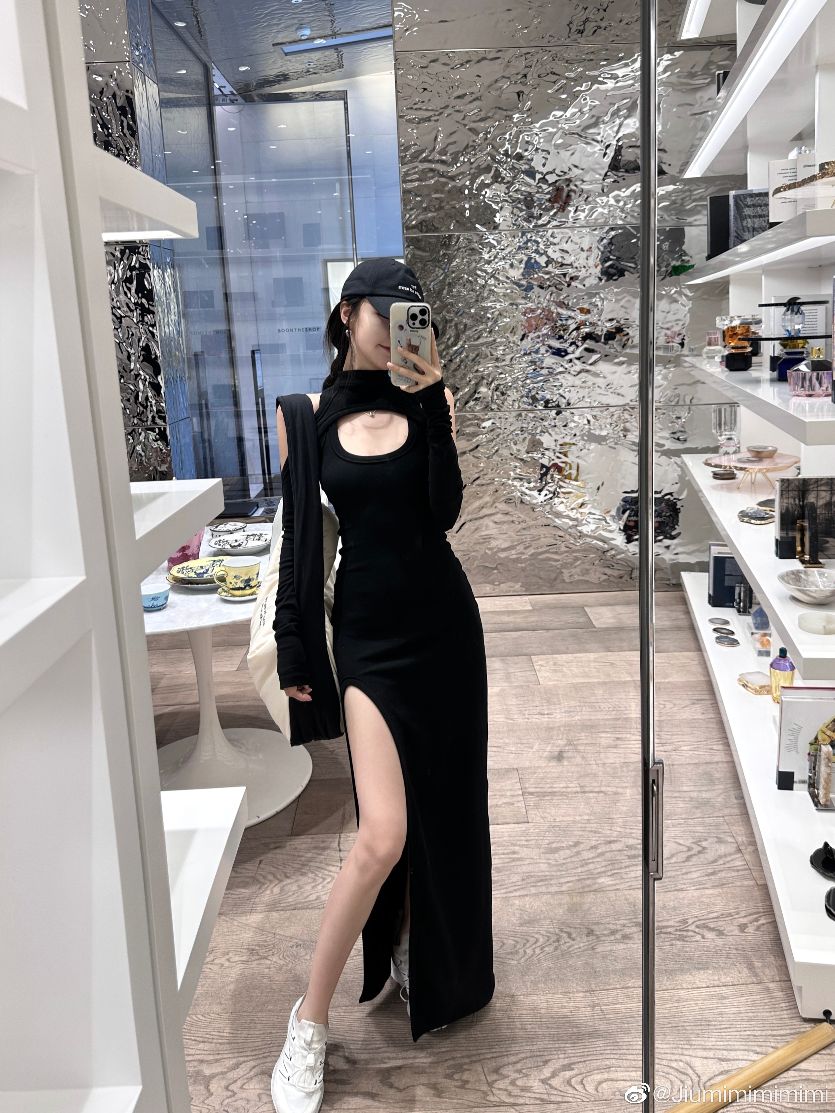 前侧高开叉设计 显腿长 位置刚刚好不会走光