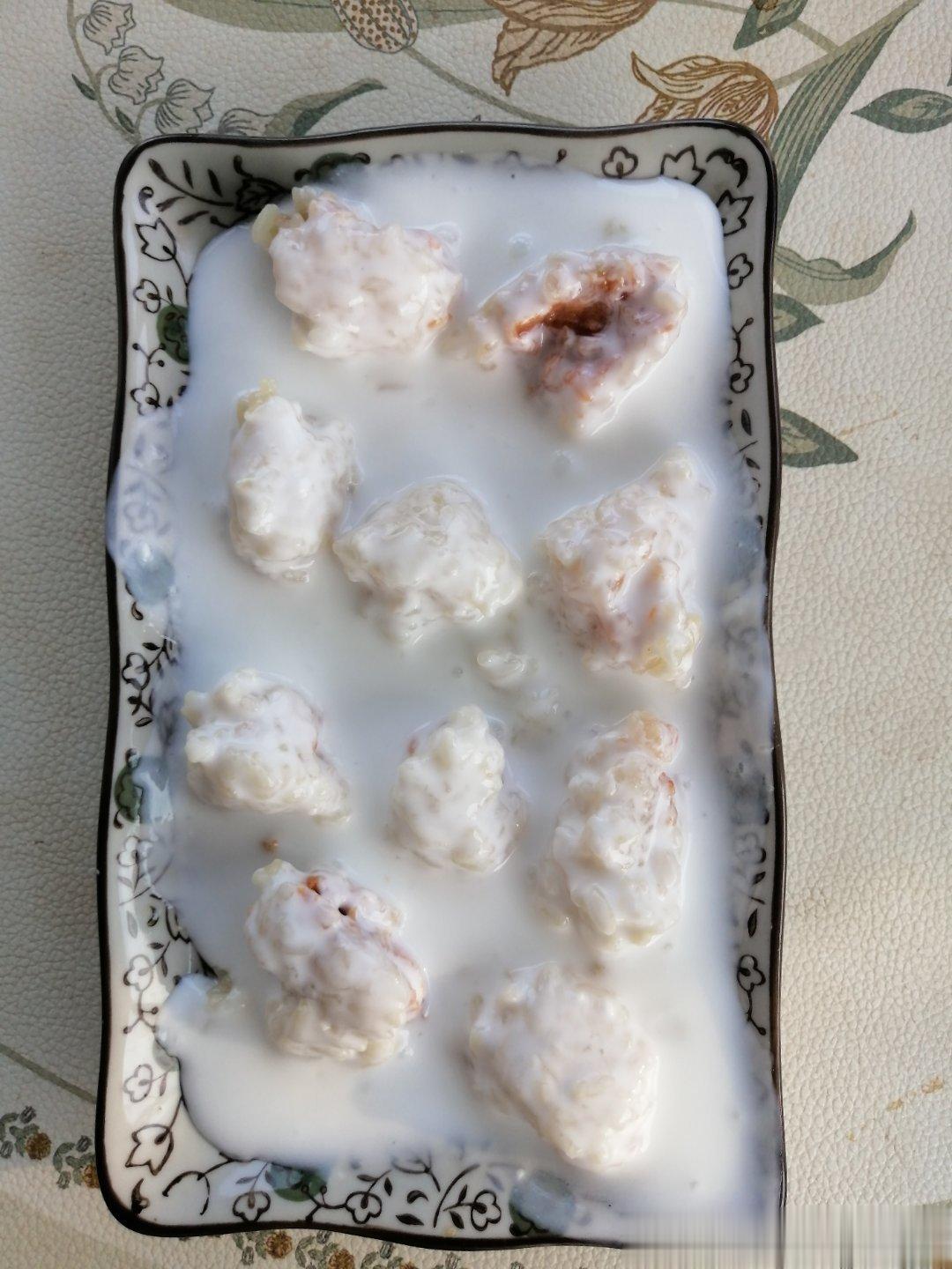 媳妇看我这么吃,可能觉得好玩吧!她说我尝一点点啊!结果她吃完,露出亦惊亦喜的表情,啊,这么吃挺好啊。我就把我拌完的粽子块儿夹出,奶底儿(其实还剩不少呢,够了)给她了。我说你蘸着吃吧。我说这么真挺好,要不咱们吃粽子不是还得蘸白糖呢吧,就蘸酸奶了,比白糖好吃。
