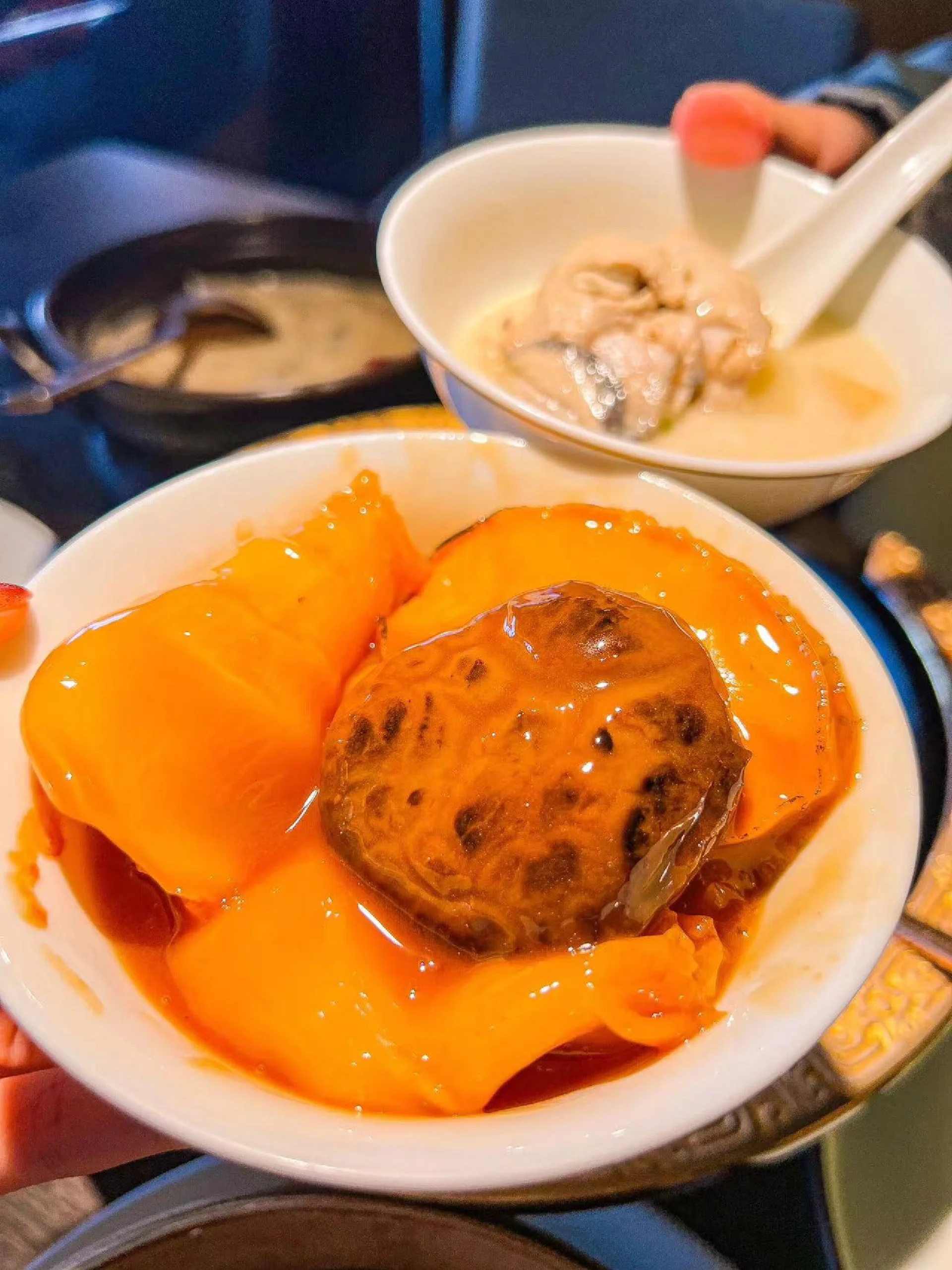 用料超级丰富,有个头巨大的鲍鱼、花胶、鹅🦢掌和花菇等,配上好吃的酱汁!