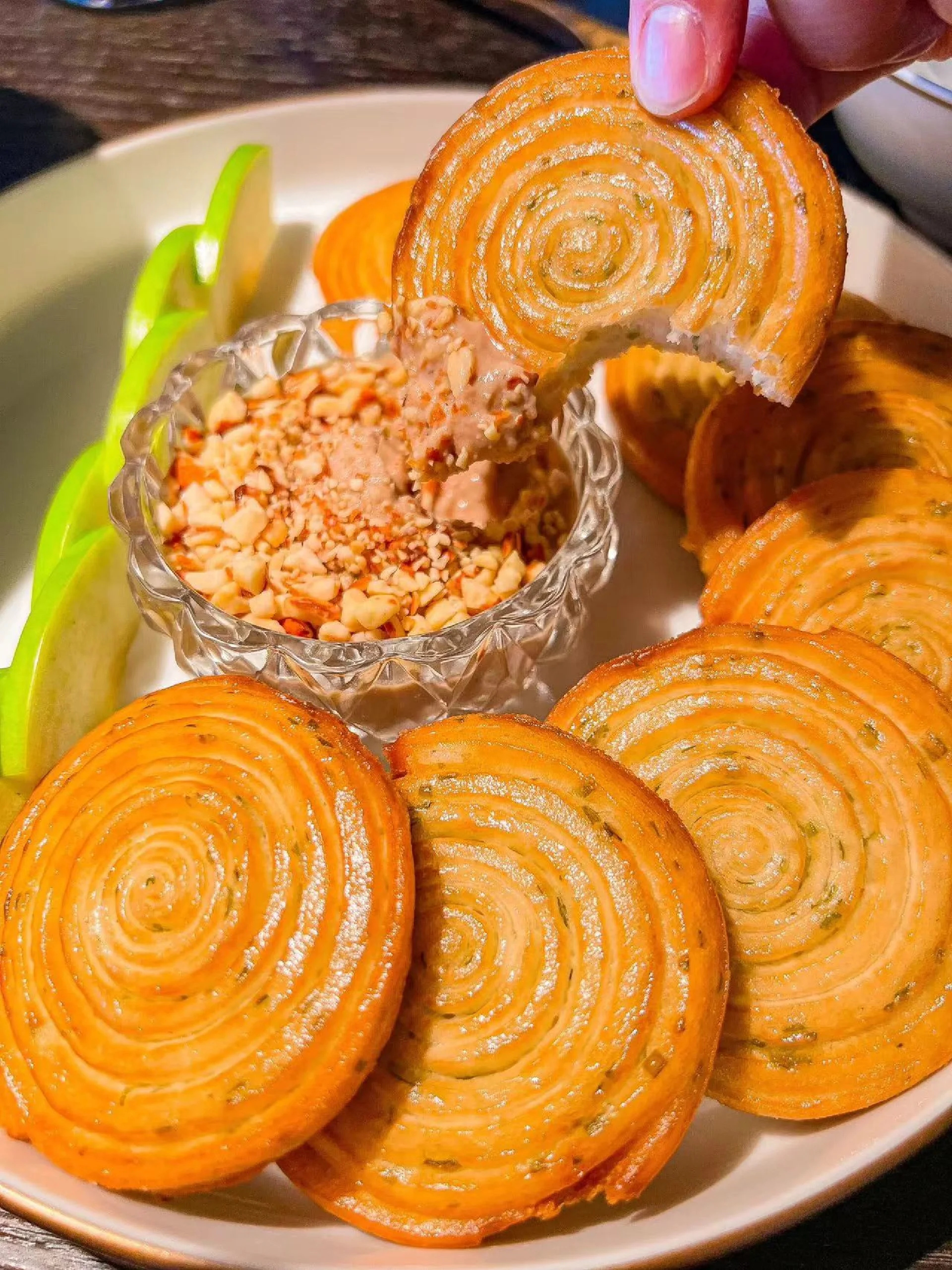 非常精致的一道菜,鹅肝酱味道浓郁,葱油饼做的酥酥脆脆,用鹅肝酱涂满葱油饼,一口香极了。