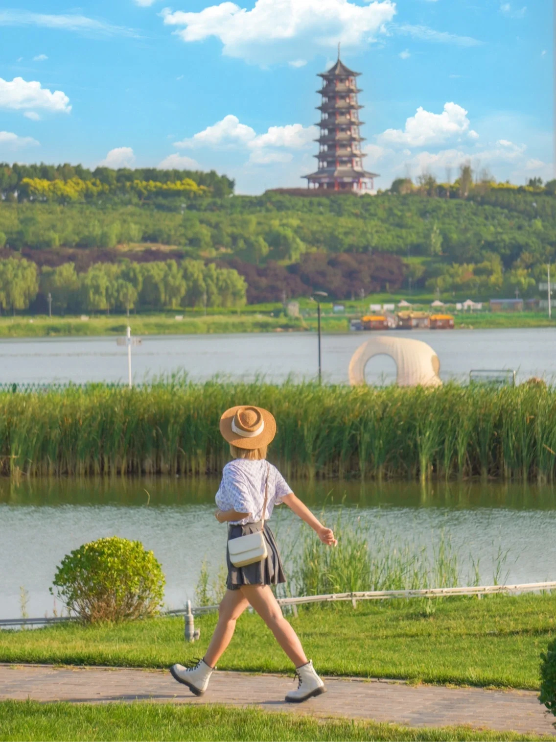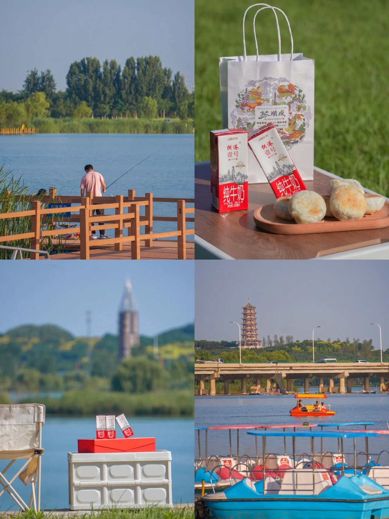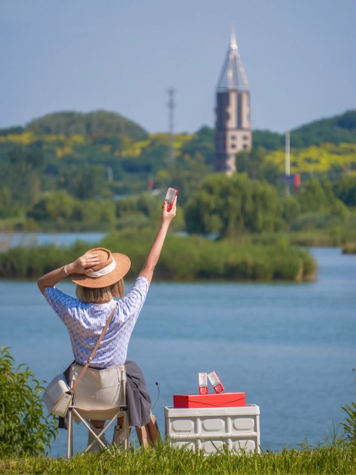 3、河边可以钓鱼,还可以划船🛶一路上有很多艺术装置可以拍照打卡。