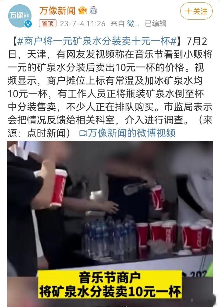 #商户将一元矿泉水分装卖十元一杯#
