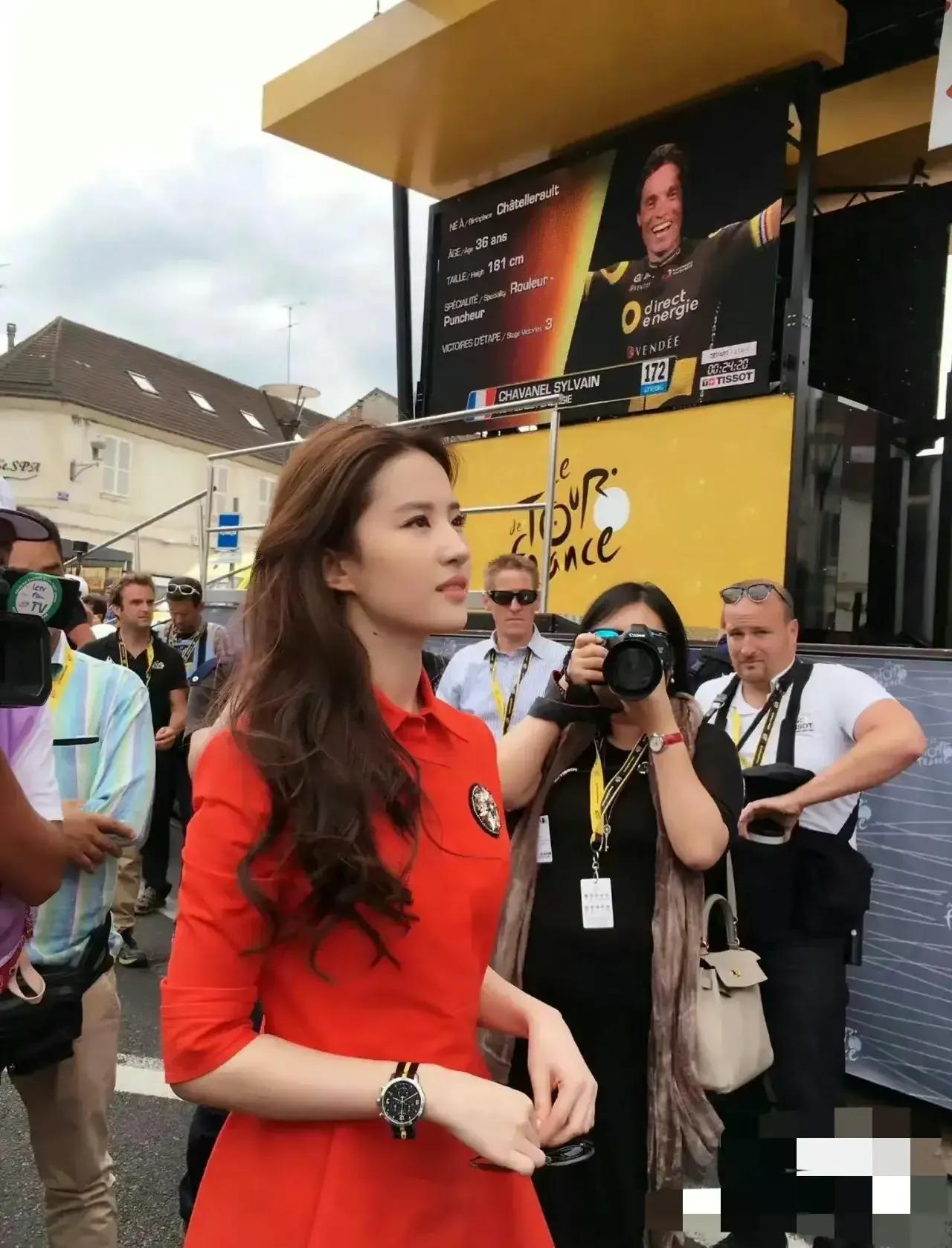 刘亦菲这一身衣服太丑了,用花挡住了才觉得好一点,全靠脸撑着