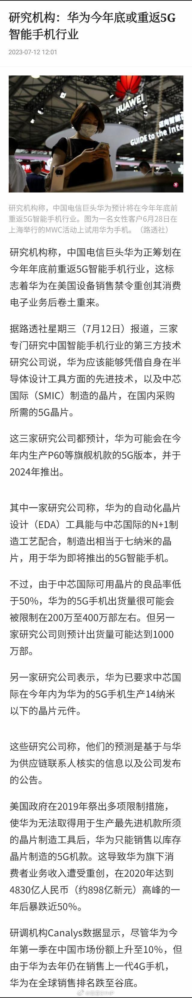 通过路透社和其他大量渠道信息来看,华为突破5G的消息基本上吻合了之前nova12的时间点了。