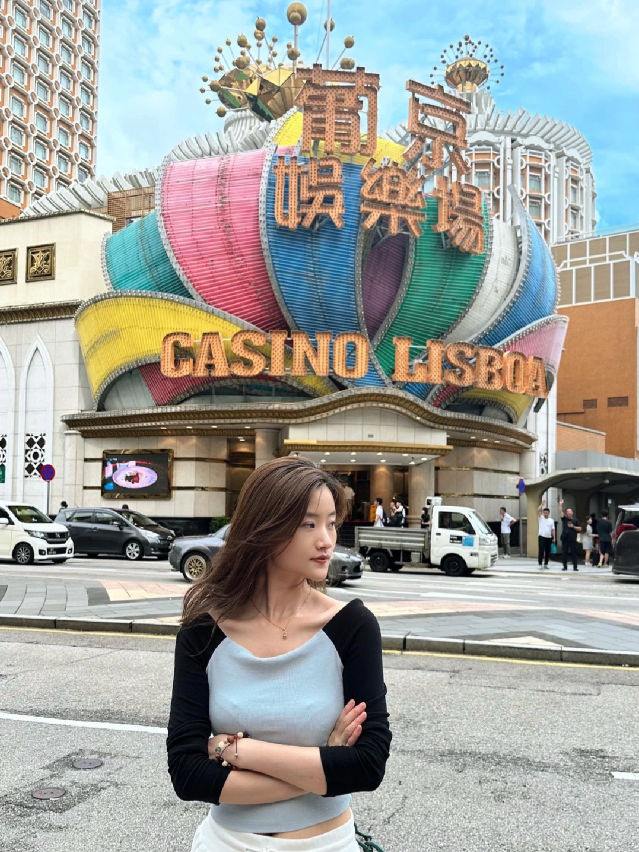 新葡京酒店门口马路边,赌王同款财富机位,背景一样💎前途无量💰