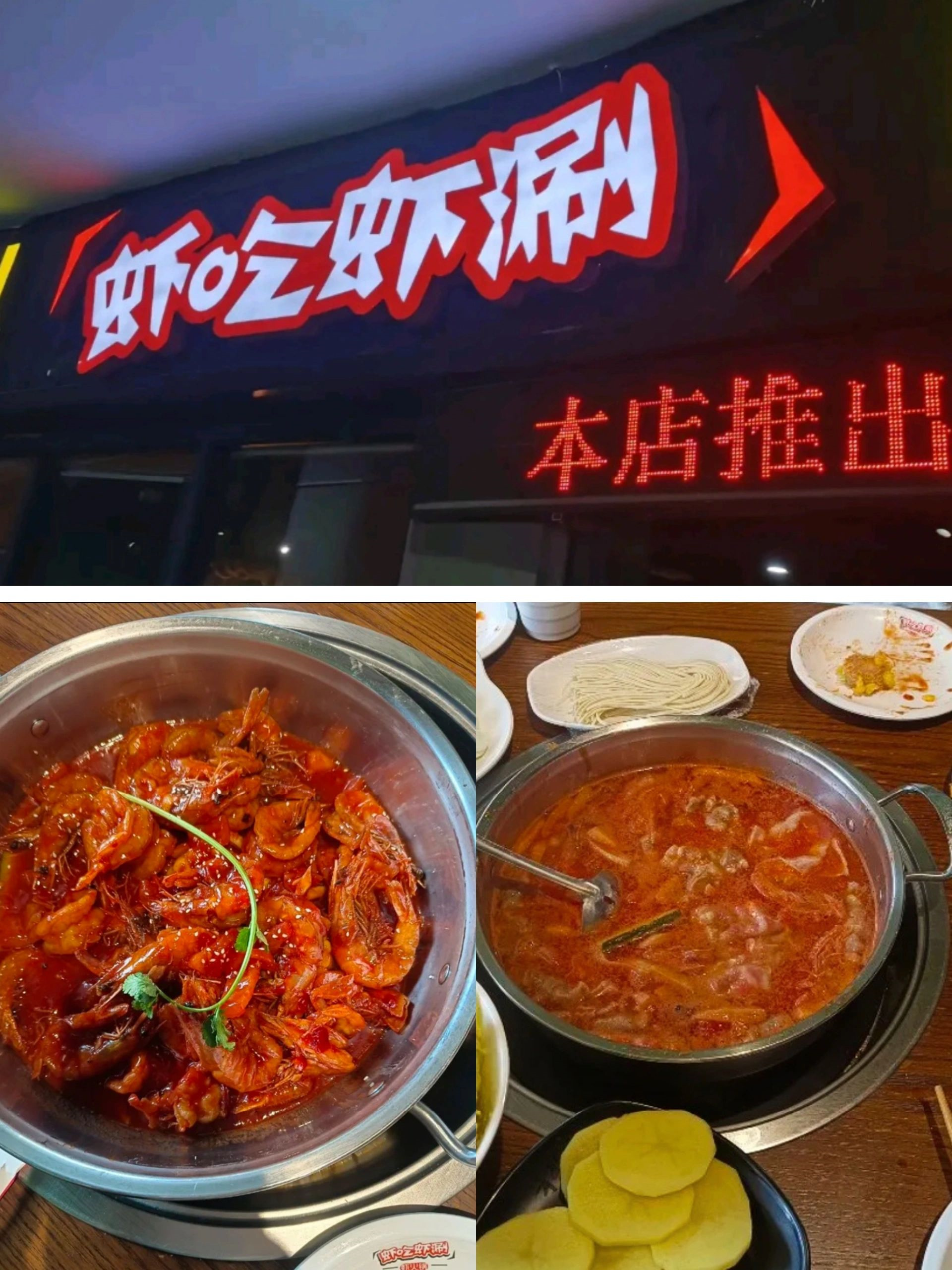 蛮好吃的,刚开始的时候,先上一盆虾,虾蛮香的,吃完虾以后,加汤,像火锅一样涮牛肉羊肉,各种丸子。