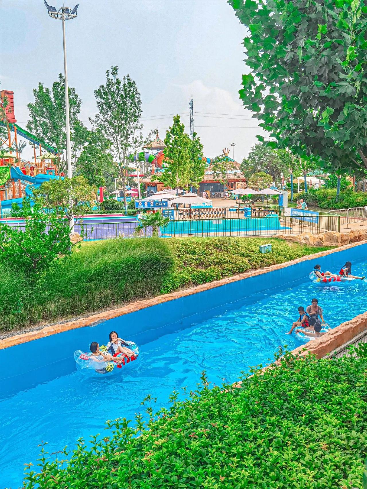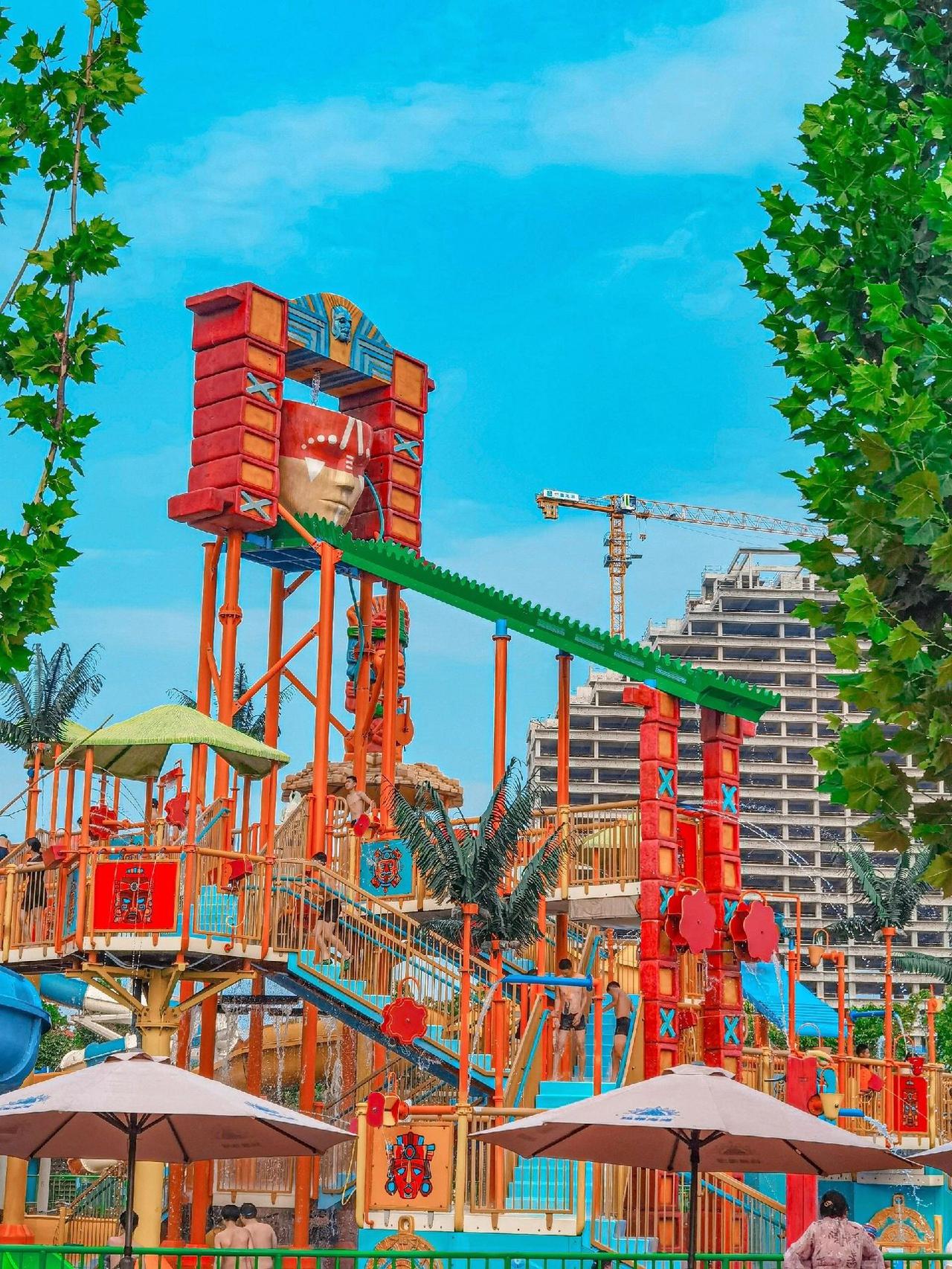 西安好吃的好玩好逛的太多太多了,连水上世界也相当的炸裂~夏天就是要快乐玩水💦 . 园区以玛雅建筑为主题,五颜六色的设施,入园就被气氛代入了…激流过山车、冲浪板、造浪池、漂流、各种水滑梯…挨个玩,真的不要太过瘾哦✅ . 小朋友来了也有适合的项目,小喇叭、水上充气城堡这类水浅、安全的…7月1日开始运营时间延长到10:00-22:00,4点开始夜场入园,晚上在造浪池的中央舞台还有元气音乐排队,真的嗨翻了~ 🚇交通:5号线&16号线直达,欢乐谷站亲子游玩好去处夏天就是要玩水 #西安玛雅海滩水公园