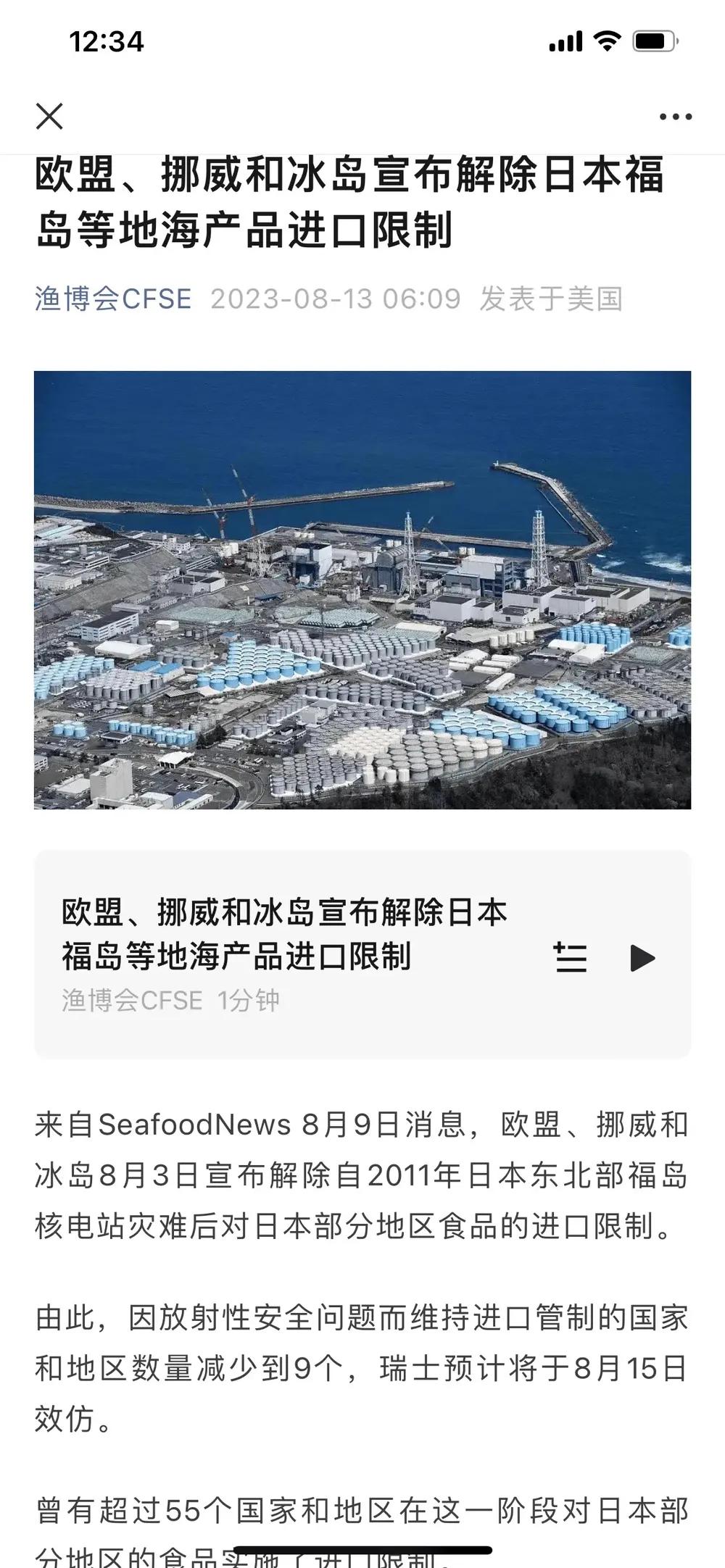 人家根本不进口海产品,看看世界地图查查历史就知道,这几个国家都是海产品出口国,所以,放不放开有啥关系
