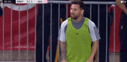 下半场刚刚开始,梅西就已经到场边进行热身