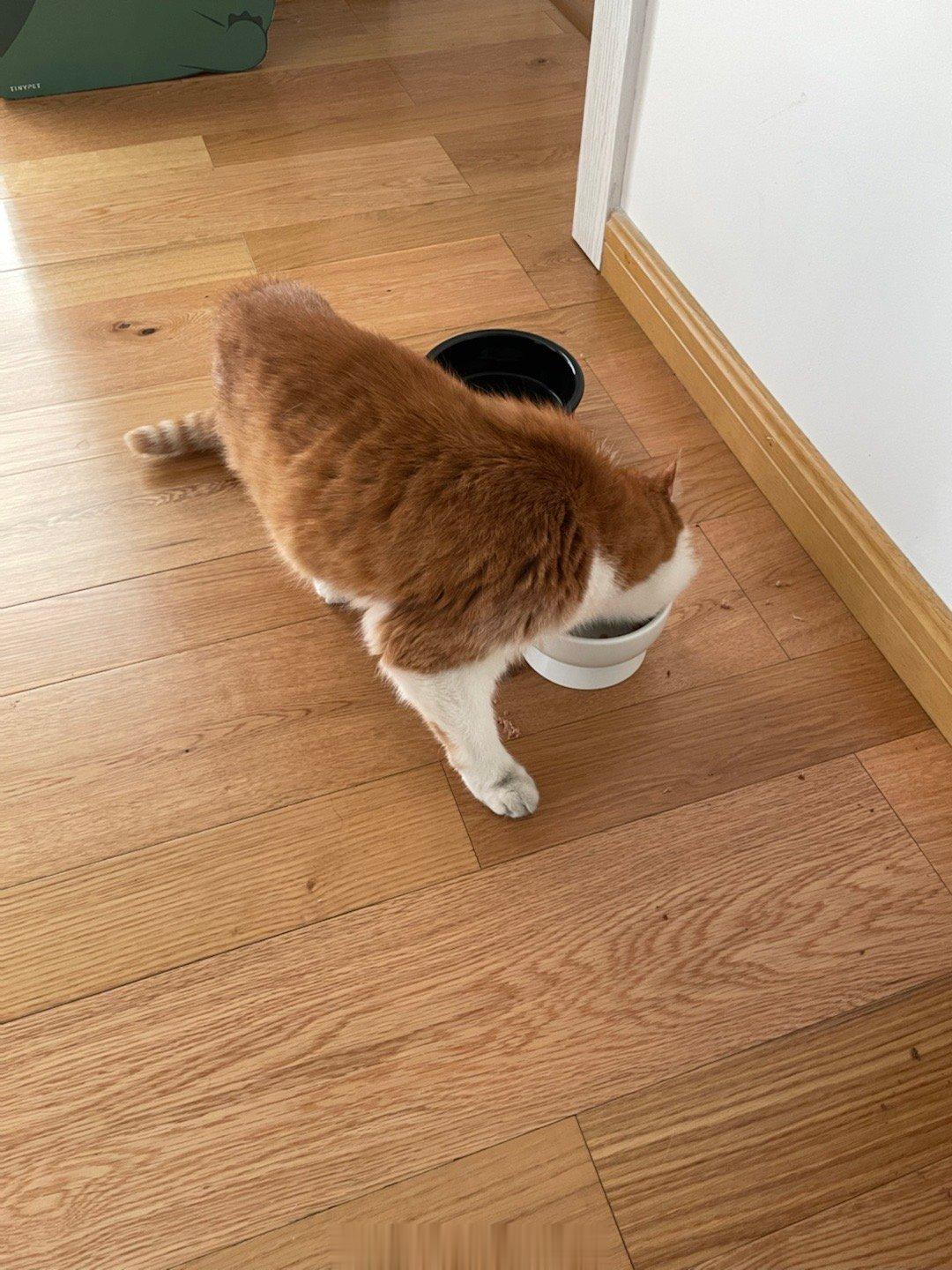 #萌宠那些事[超话]# 不要问,不要质疑,不要管脖子酸不酸痛不痛,小猫咪爱用什么姿势吃饭就夸什么姿势。