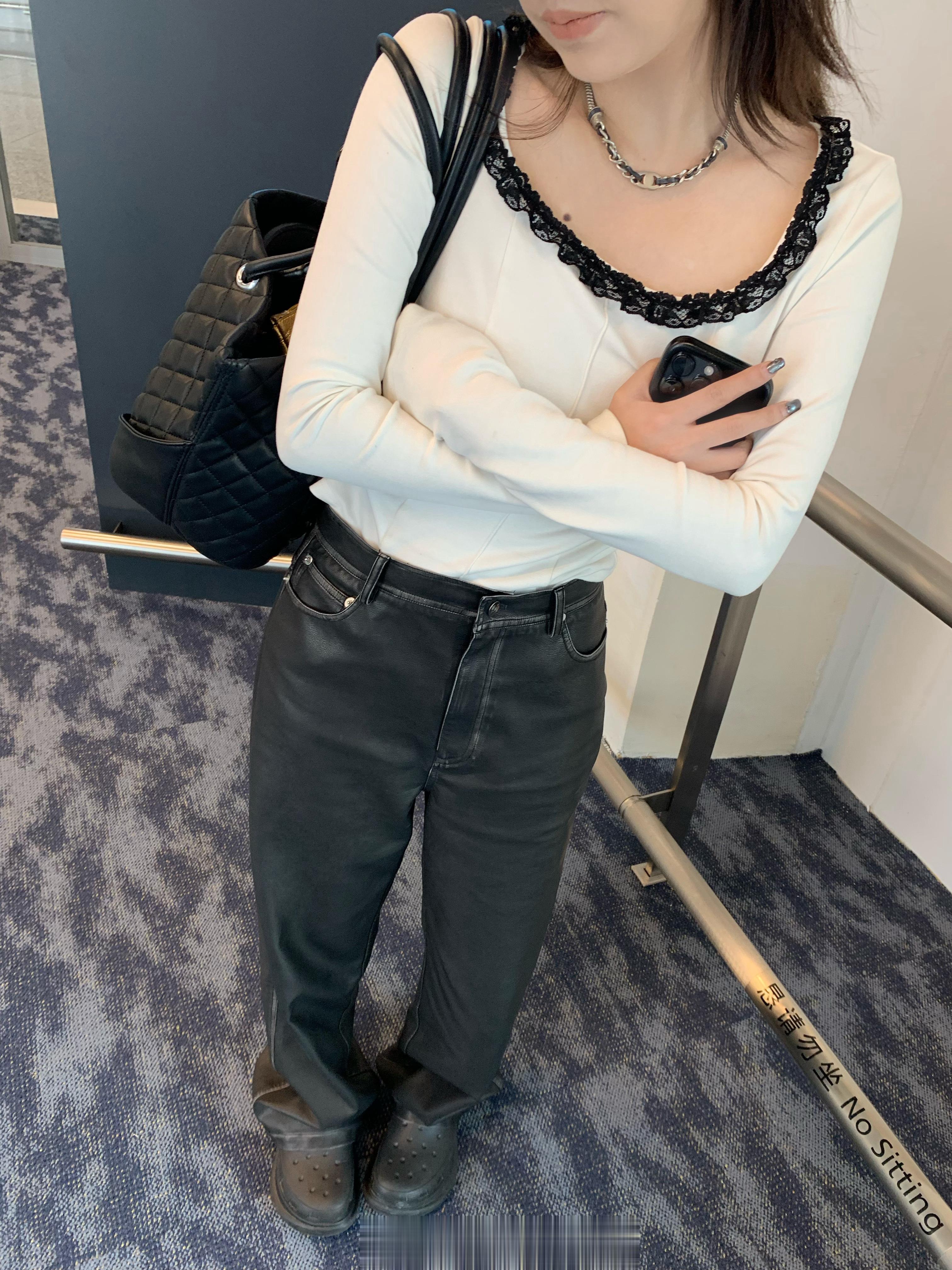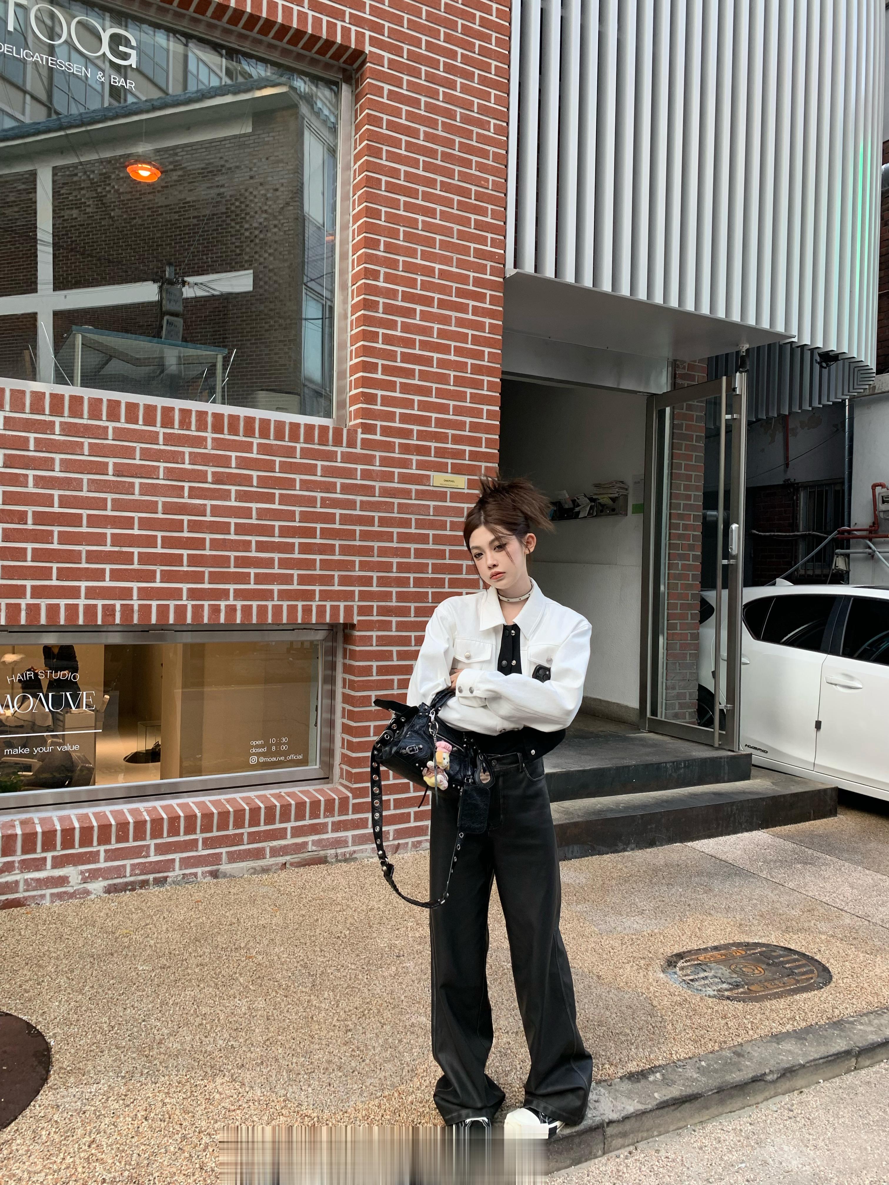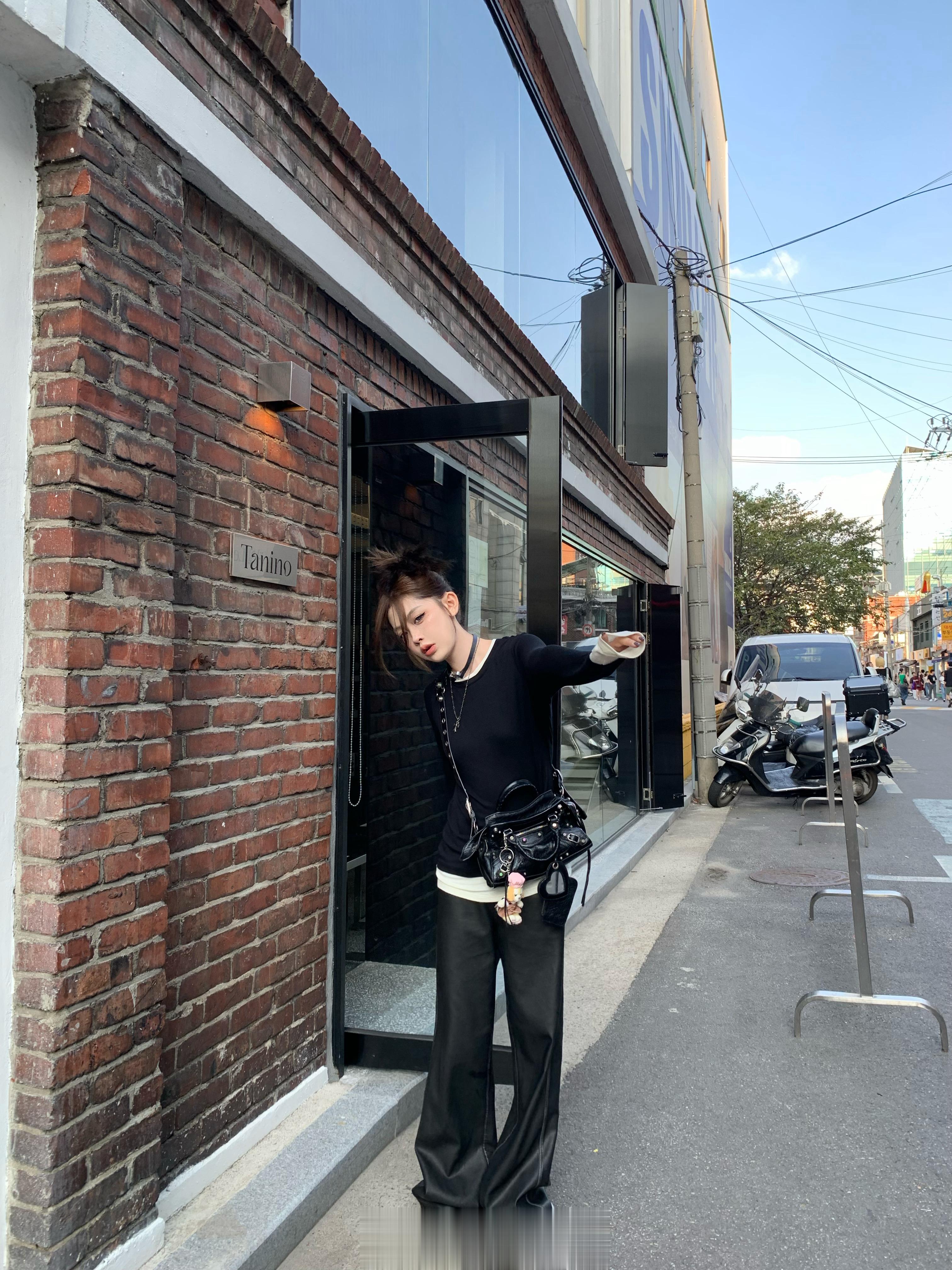 买过去年那条爆款皮裤的姐妹都知道有多好穿!直筒的裤型巨!显!瘦!又飒又有型😎跟今年很火的擦色一结合绝了好吗[憧憬]