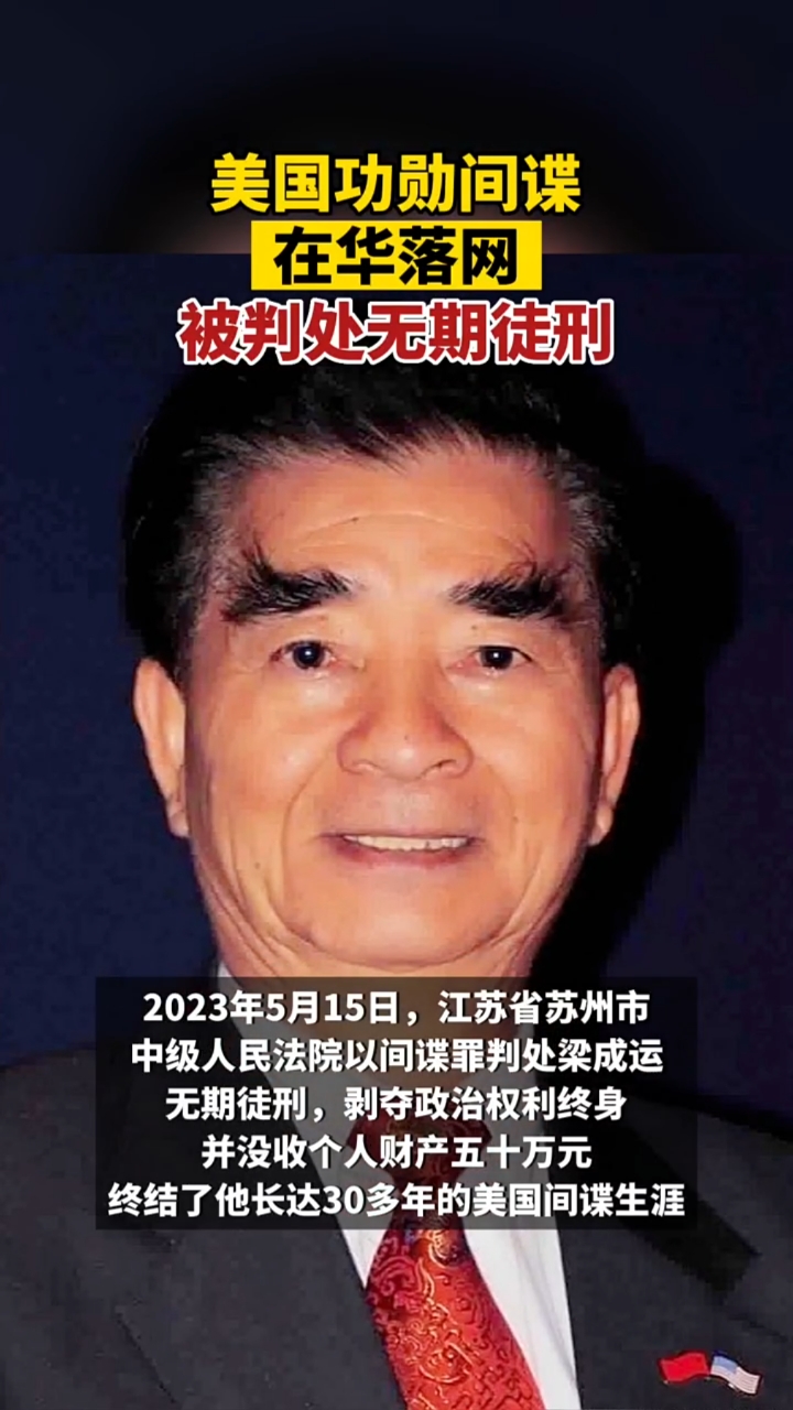 1989年,梁成运与美间谍机关签订协议,开始了他的美国间谍生涯。2023年5月15日被判处无期徒刑,终结了他长达三十多年的美国间谍生涯!