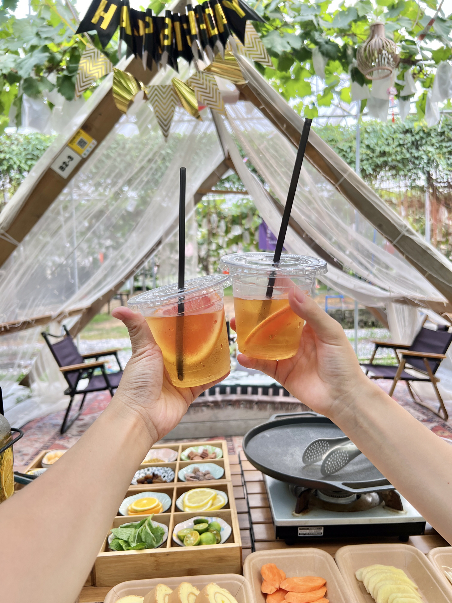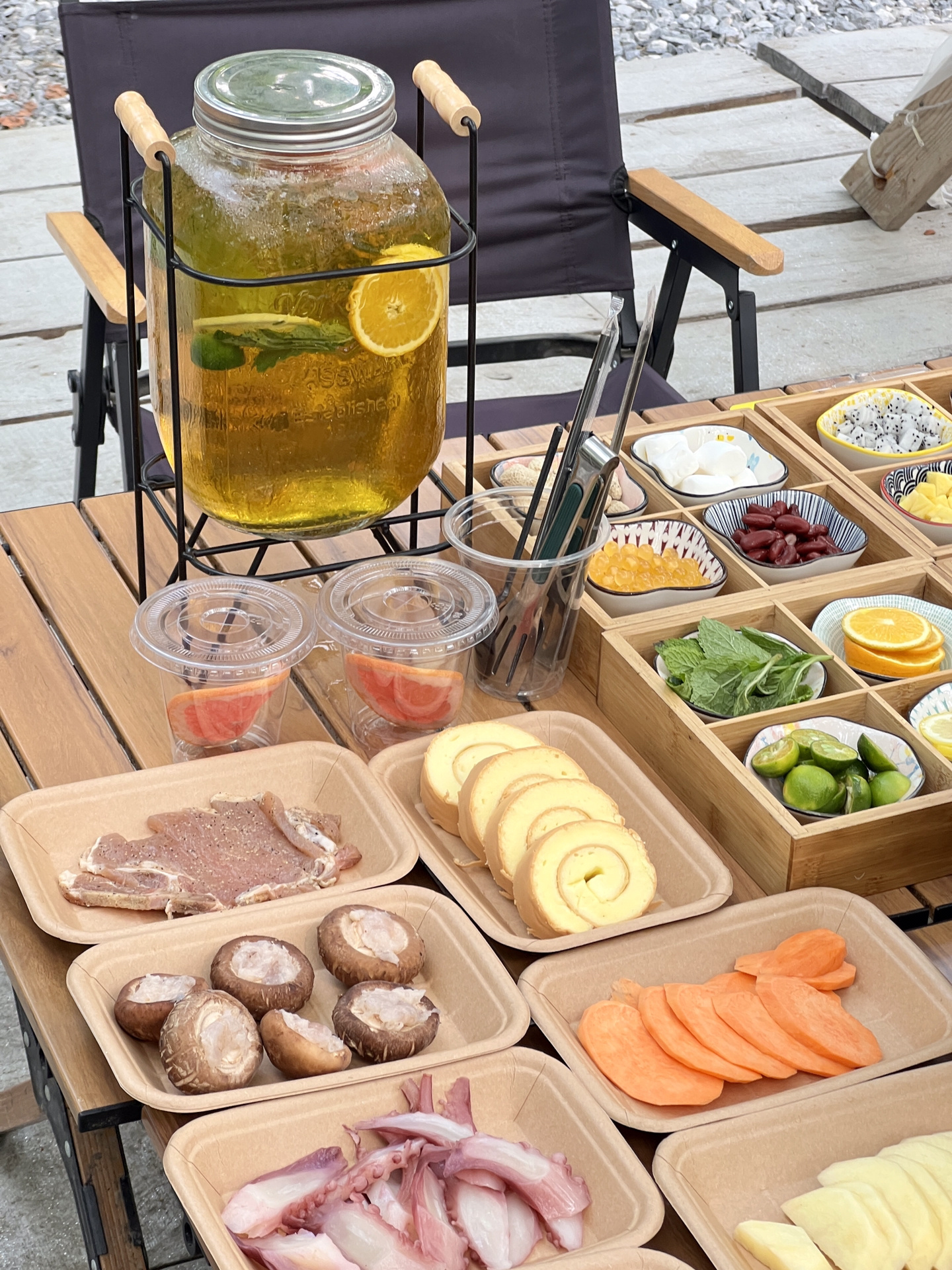 我们点的是大满贯下午套餐,食材也太丰富多样了吧,冰镇饮料🥤、水果🍉、烤肉🥩统统都有